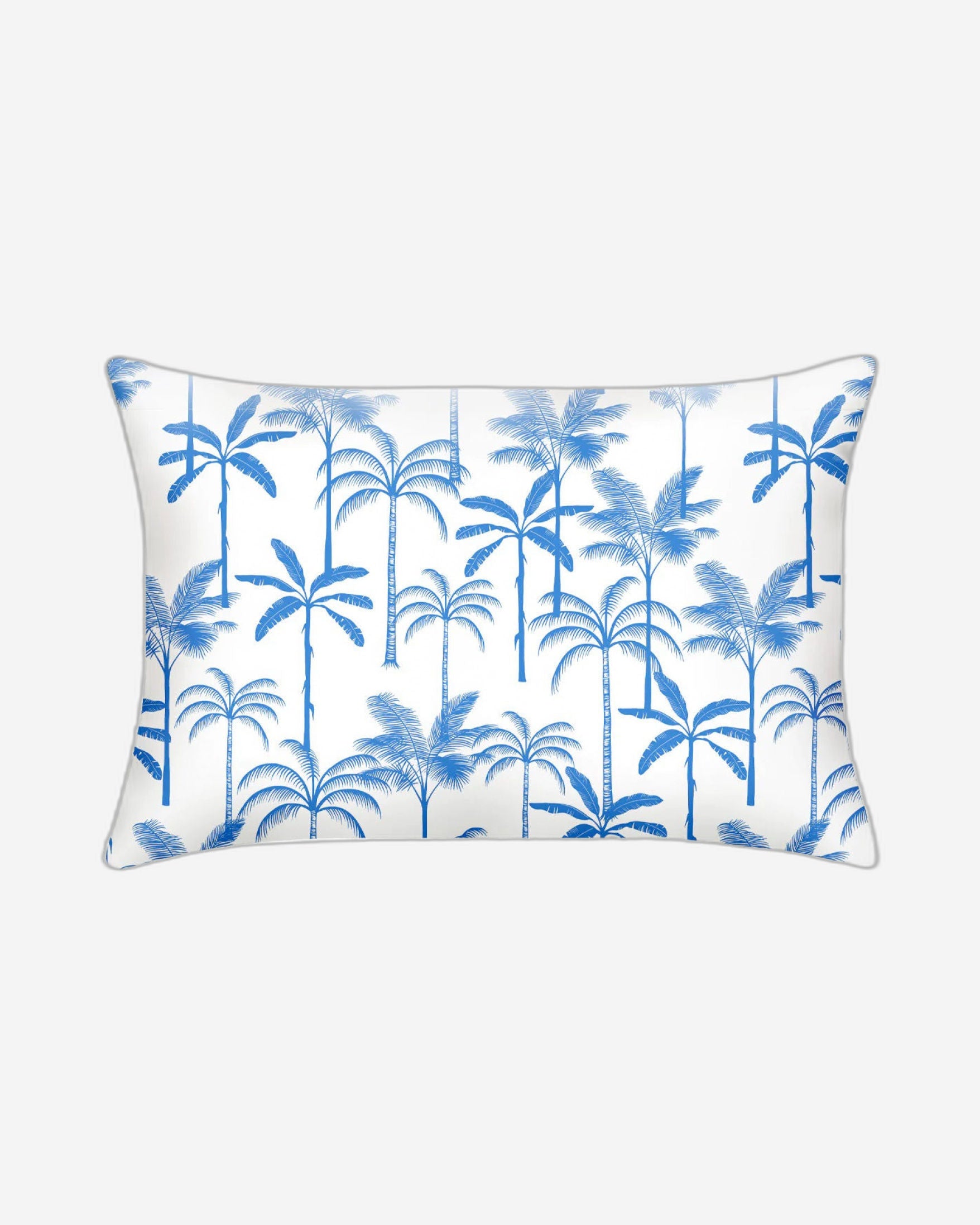 هذا التصميم ذو الإصدار المحدود يُضفي على روتين نومك هدوءًا استوائيًا وسحرًا متوسطيًا. يتميز غطاء الوسادة الحريري هذا بنقوش نخيل أنيقة محفورة على قماش عاجي أنيق، بلون الأزرق المتوسطي الرائج لعام ٢٠٢٣. بمجرد أن تلامس رأسك الوسادة، ستُنقل إلى ملاذ هادئ على شاطئ البحر.