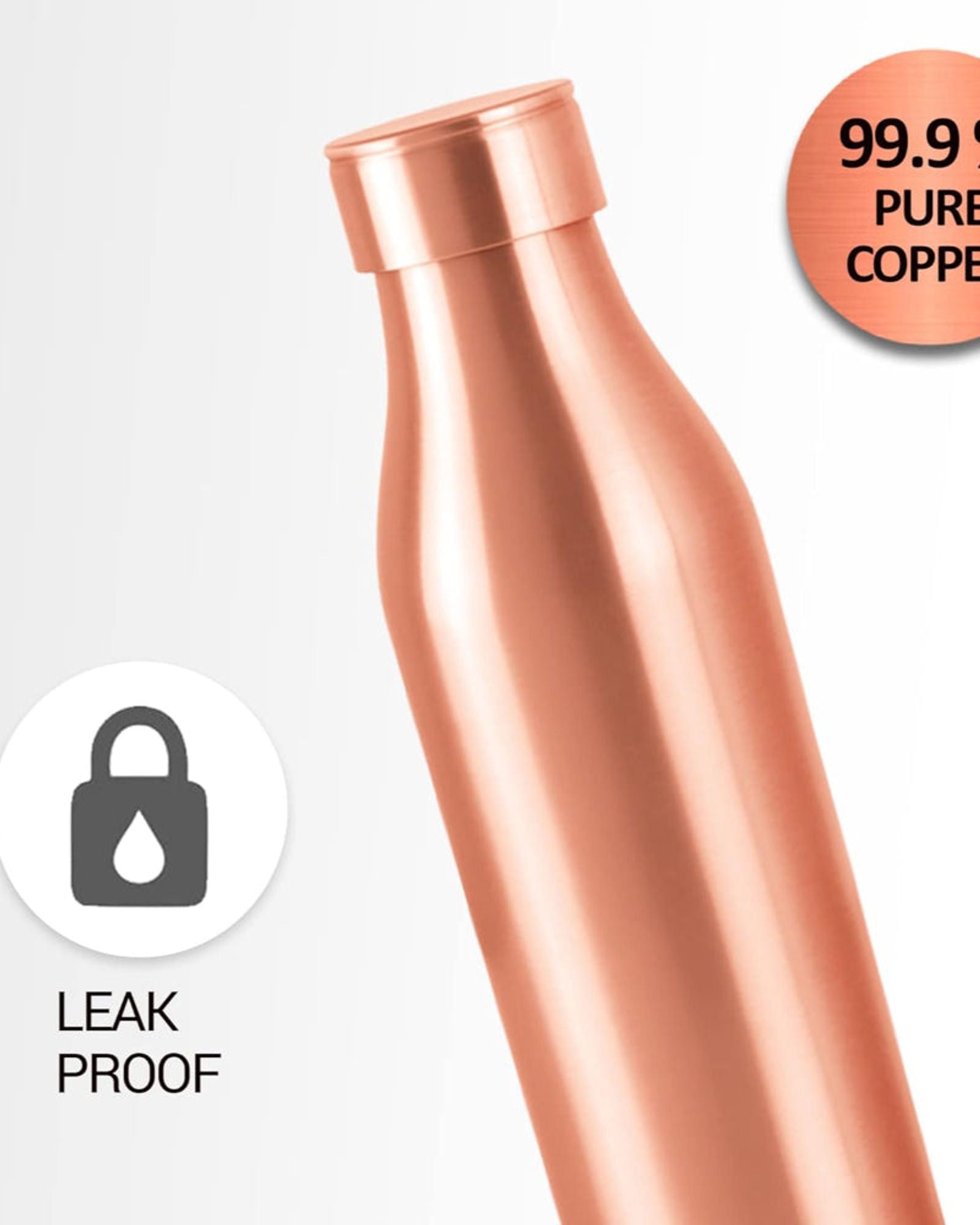 النحاس، الذهب الأبيض الآخر من الطب الأيورفيدي القديم، يُقدم لكم في زجاجة من دار ميلتون. هذه الزجاجة ذات التصميم الانسيابي الأنيق مصنوعة من نحاس نقي بنسبة 99.9%. زجاجات النحاس هي الرفيق الأمثل لأصحاب نمط الحياة النشط. فإلى جانب فوائدها الصحية، تُعدّ هذه الزجاجات تحفة فنية يدوية الصنع تجمع بين الجمال والوظيفة.