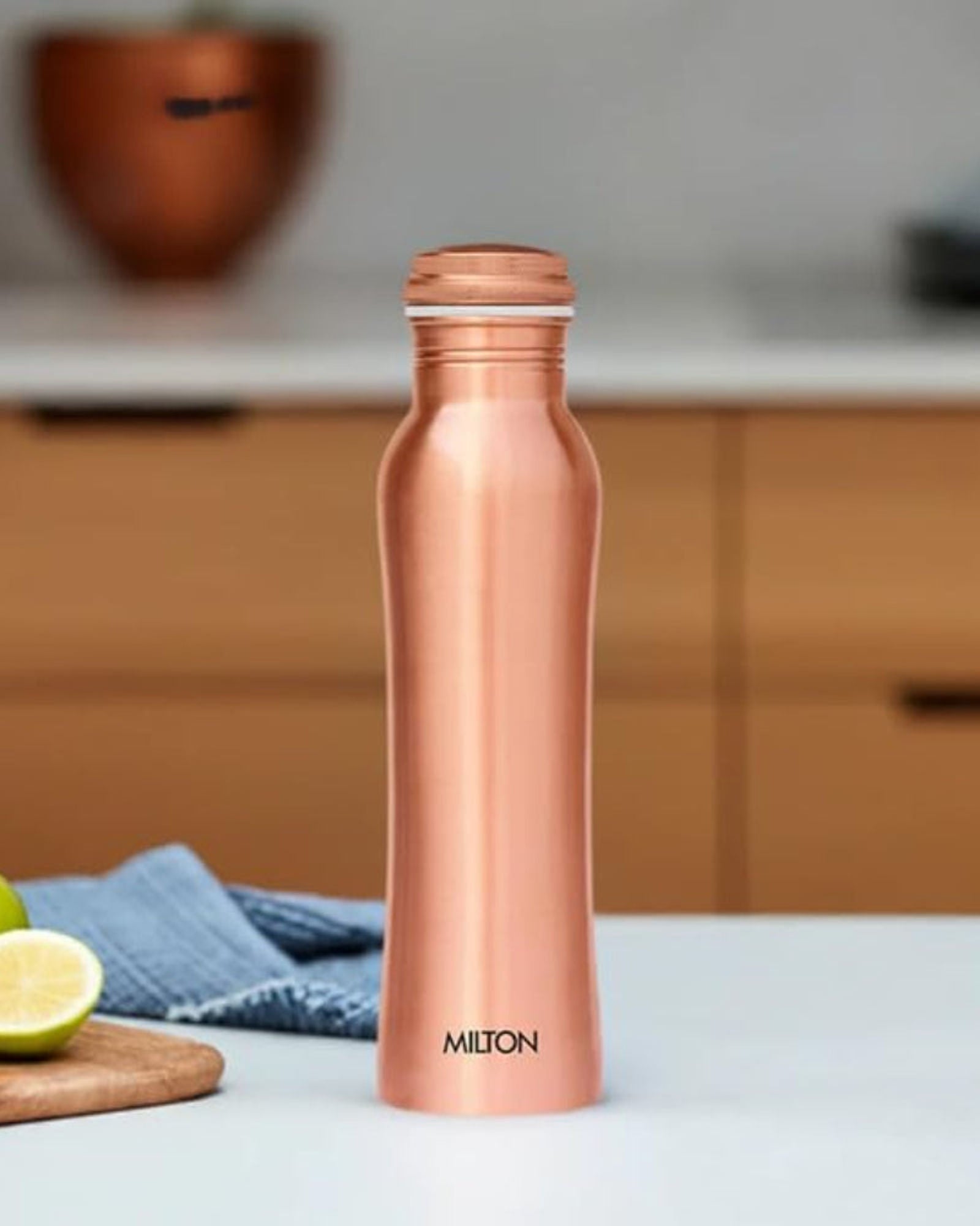 النحاس، الذهب الأبيض الآخر من الطب الأيورفيدي القديم، يُقدم لكم في زجاجة من دار ميلتون. هذه الزجاجة ذات التصميم الانسيابي الأنيق مصنوعة من نحاس نقي بنسبة 99.9%. زجاجات النحاس هي الرفيق الأمثل لأصحاب نمط الحياة النشط. فإلى جانب فوائدها الصحية، تُعدّ هذه الزجاجات تحفة فنية يدوية الصنع تجمع بين الجمال والوظيفة.