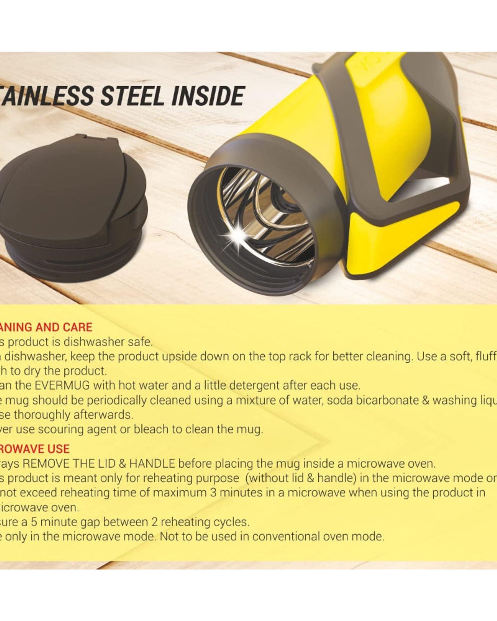 • كوب ميلتون إيفر ماج الداخلي المعزول المصنوع من الفولاذ المقاوم للصدأ مع مقبض، سعة 350 مل، أصفر | مانع للتسرب | آمن للاستخدام في الميكروويف
