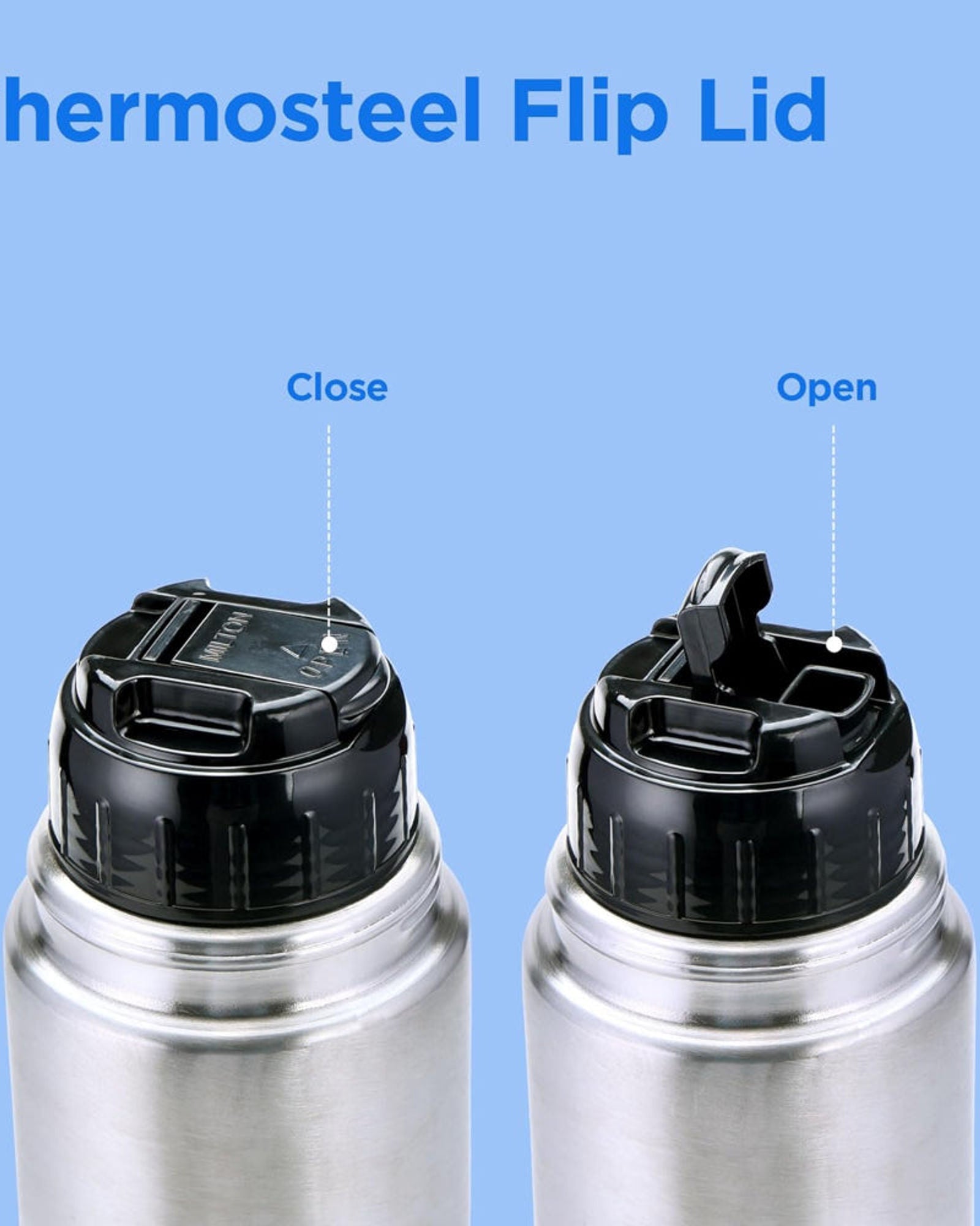 زجاجة ماء من الفولاذ المقاوم للصدأ - زجاجة ميلتون ثيرموستيل المعزولة ذات الغطاء القلاب مصنوعة من الفولاذ المقاوم للصدأ عالي الجودة SS 304، وهي متينة ومقاومة للصدأ وسهلة التنظيف. توفر هذه الزجاجة المعزولة بتفريغ الهواء تصميمًا أنيقًا وعصريًا يتماشى مع أسلوبك العصري، مع الحفاظ على مشروباتك في متناول يدك.
