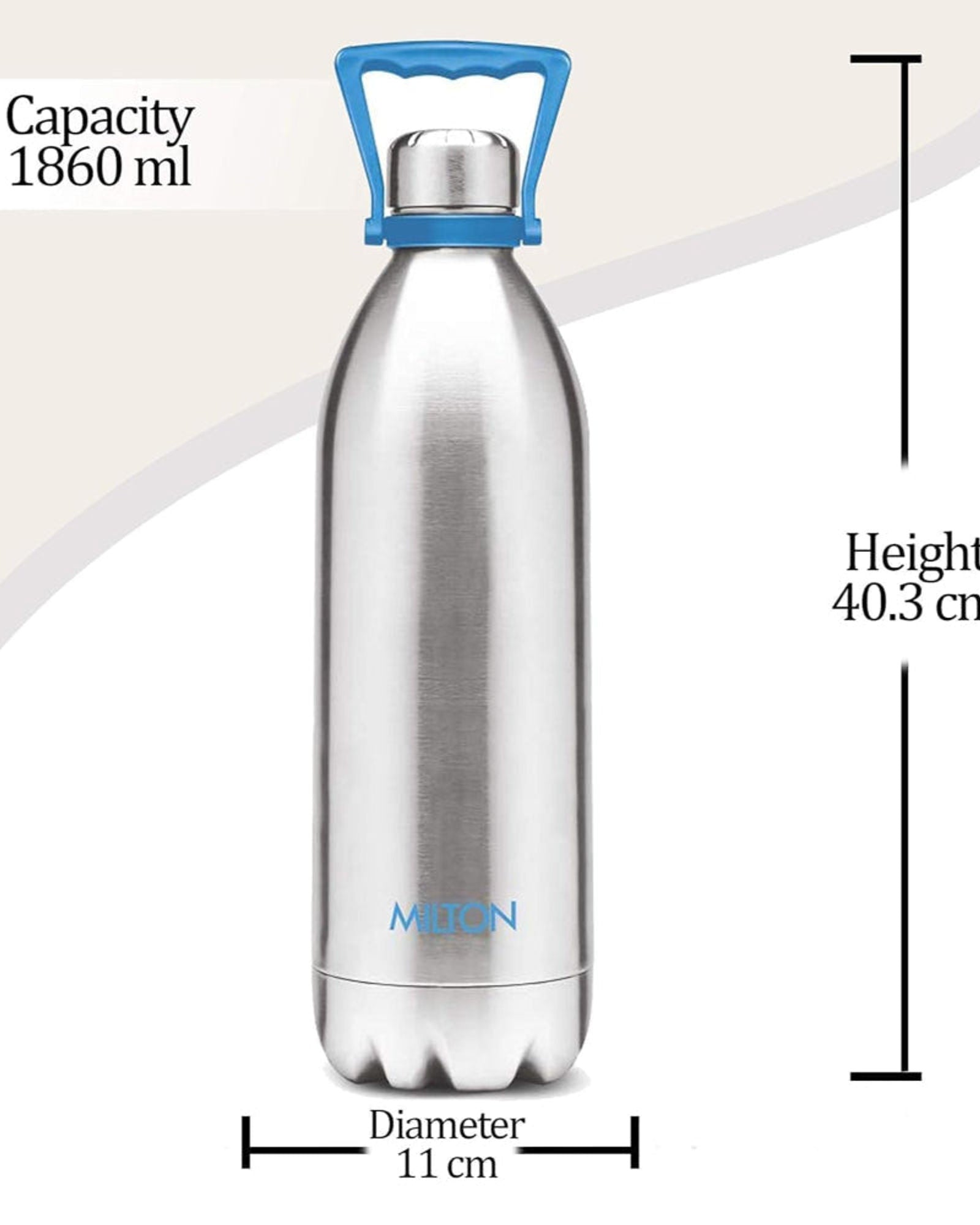 زجاجة ميلتون ديو ديلوكس 2000 المعزولة بتفريغ الهواء من الفولاذ المقاوم للصدأ (1.86 لتر) مع مقبض | مصنوعة من الفولاذ المقاوم للصدأ 18/8، تحافظ على المشروبات ساخنة وباردة لمدة 24 ساعة، ترمس مزدوج الجدران مع طلاء نحاسي داخلي