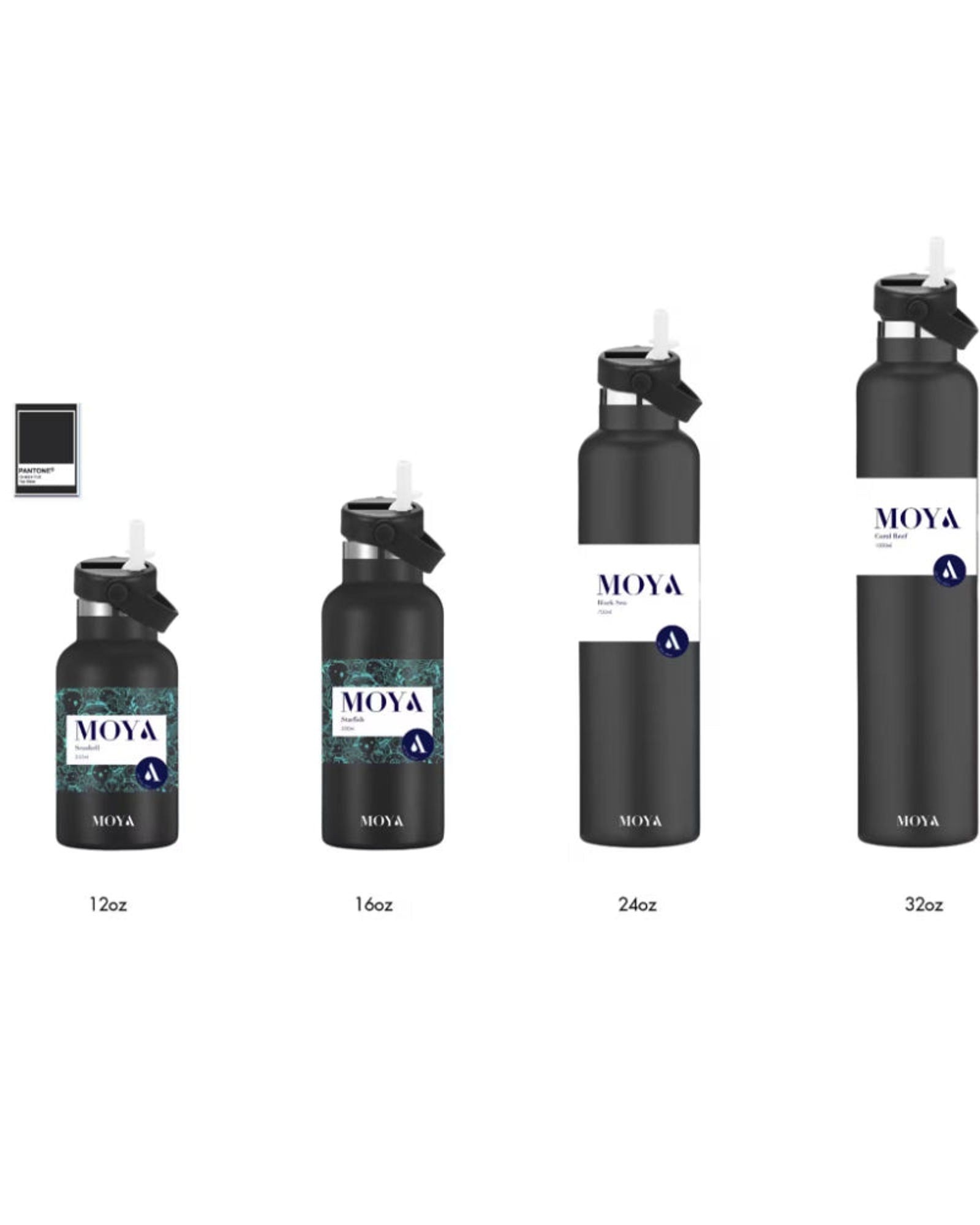 * ترطيب صديق للبيئة بكل سهولة! زجاجة مياه مويا "صدفة البحر" سعة 350 مل باللون الأسود مصنوعة من الفولاذ المقاوم للصدأ المستدام، مما يوفر بديلاً صديقًا للبيئة وقابلًا لإعادة الاستخدام للزجاجات البلاستيكية أحادية الاستخدام. حافظ على رطوبة جسمك، وأحدث فرقًا!