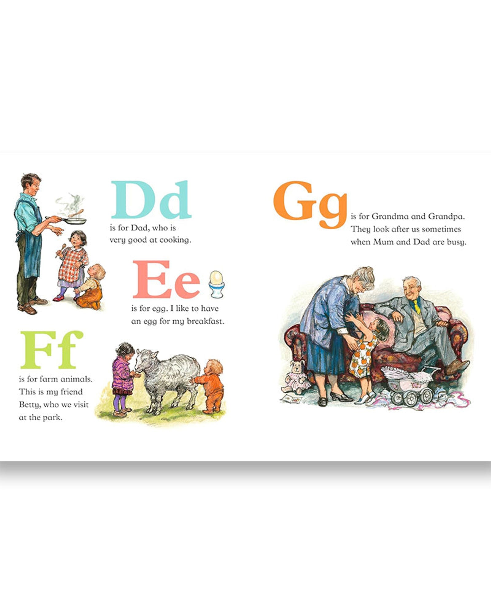 كتابٌ مُقوّى ساحرٌ عن الحروف الأولى والكلمات للأطفال الصغار جدًا من شيرلي هيوز، إحدى أشهر مؤلفي ورسامي كتب الأطفال. تعلّم الأبجدية ممتعٌ وسهلٌ مع كاتي وشقيقها الصغير، أولي. انضمّ إليهما في استكشاف عالمهما الودود والمألوف وكل ما يحتويه في هذا الكتاب الأول الرائع من سلسلة الأبجدية.