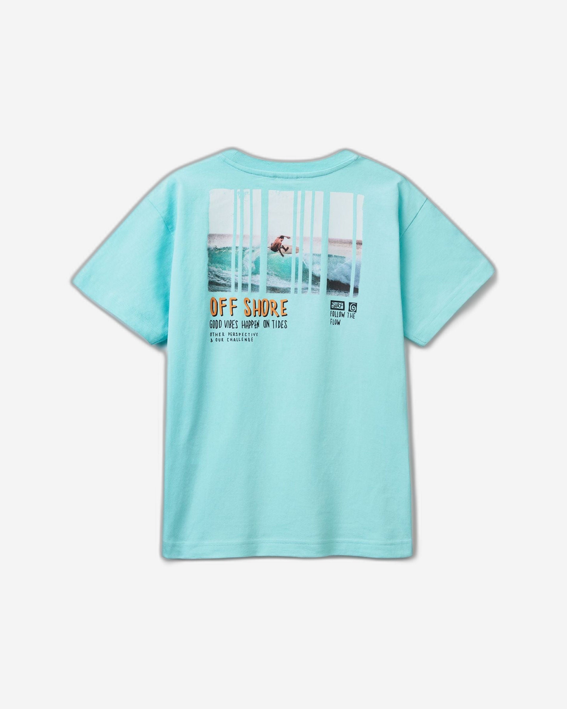 تيشيرت بأكمام قصيرة وياقة دائرية من القطن الخالص، بقصة فضفاضة. طبعة صورة بنمط بحري وشعار مطبوع. إطلالة مثالية لقضاء العطلات.
