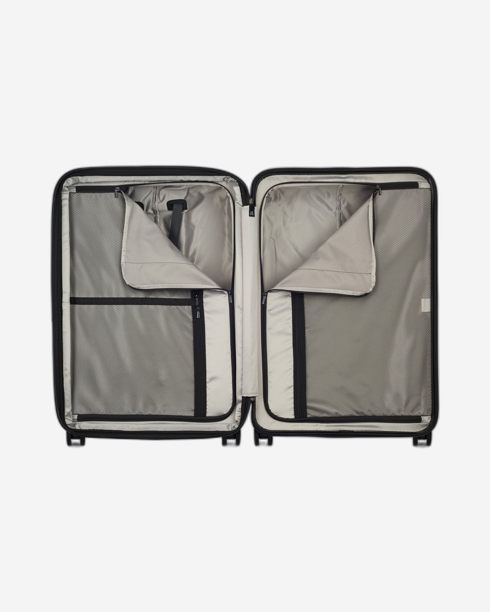 تصميم مبتكر وأنيق بخطوط رياضية، مصمم لضمان حرية حركة كاملة. المواد المتينة تقنيًا، بالإضافة إلى لمسات الجلد، تجعلها حقيبة أنيقة ومقاومة في آن واحد. احمِ حجرات الأمتعة: الأمامية والرئيسية، بفضل القفلين. تتيح لك أقفال TSA المركبة تأمين الأمتعة برمز شخصي، بينما تسمح لهيئة أمن النقل (TSA) بفحص الحقيبة دون إتلافها، بفضل مفتاح خاص. الحقيبة مزودة بنظام إغلاق آمن: Securitech2 Zip. يتميز هذا الإغلاق بميزة فريدة ومقاومة أكبر بثلاث مرات للاختراق من الإغلاق التقليدي. المقابض معالجة بمضادات الميكروبات لمنع نمو البكتيريا. يتكون الجزء الداخلي من مجموعة من الأشرطة بالإضافة إلى فاصل لتنظيم مثالي. بالإضافة إلى ذلك، صُنعت البطانة الداخلية من مادة البولي إيثيلين تيريفثالات (RPET)، وهي مادة مُعاد تدويرها بالكامل. يسمح لها مُعالجتها المضادة للميكروبات بمنع نمو البكتيريا. كما تتكيف الحقيبة مع كمية الأشياء التي تحملها بفضل المُوسّع. تحتوي الحقيبة على 4 عجلات مزدوجة متينة وهادئة. متعددة الاتجاهات، صُممت خصيصًا لسهولة المناورة.