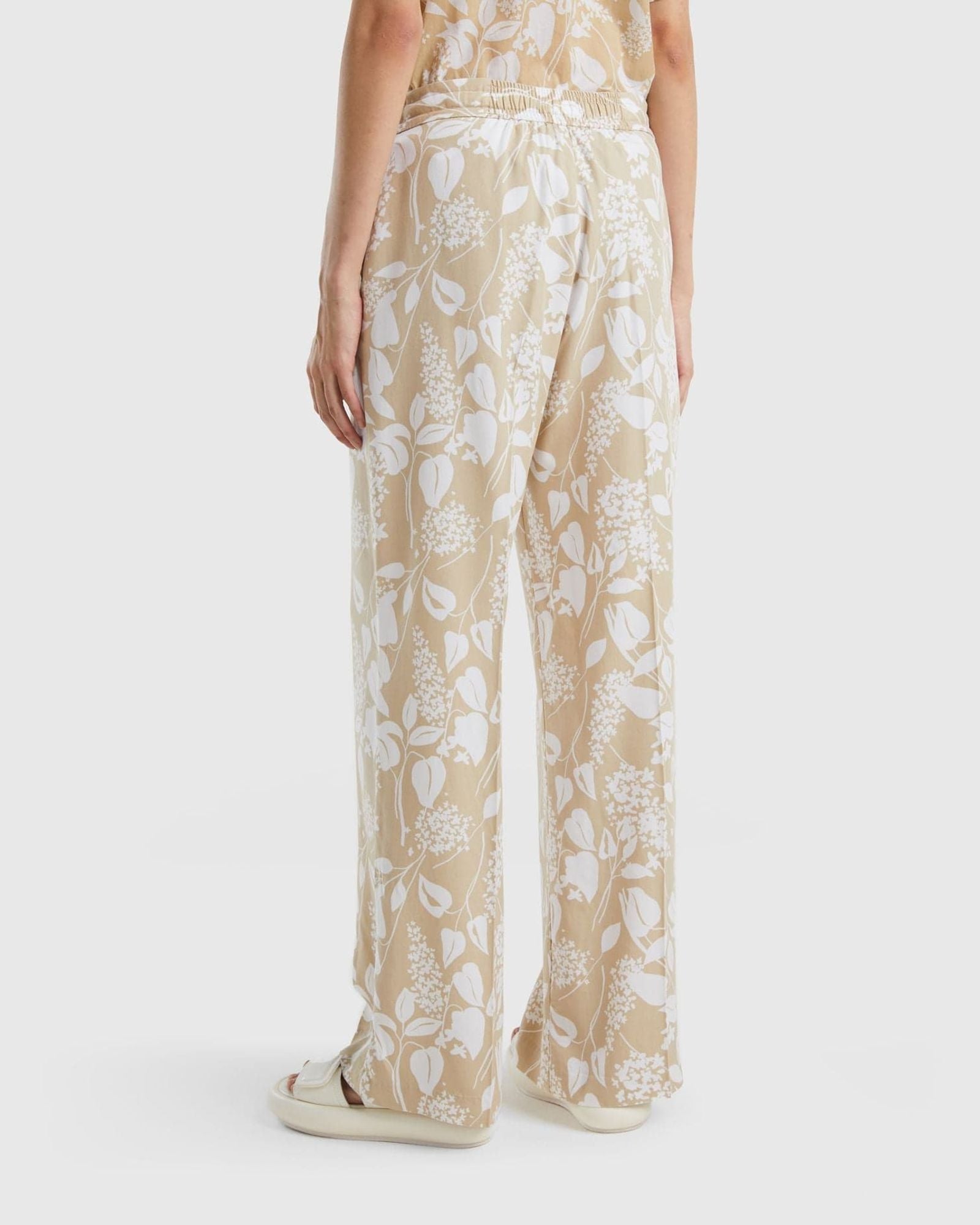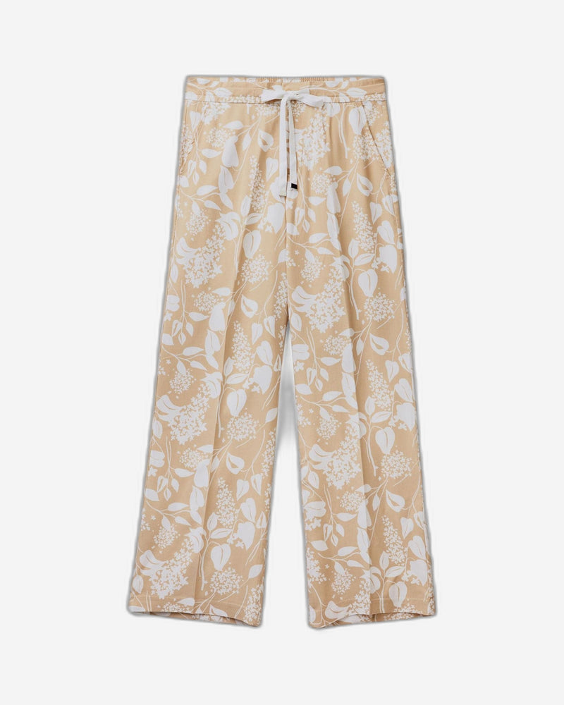 بنطلون طويل فضفاض من الليوسيل الخالص، بساق مستقيمة وطية خفيفة في المنتصف. مطاط في الخلف ورباط قابل للتعديل عند الخصر، وسحاب وأزرار للإغلاق. طبعة أنيقة تغطي البنطلون بالكامل، لإطلالة عصرية وأنثوية.
