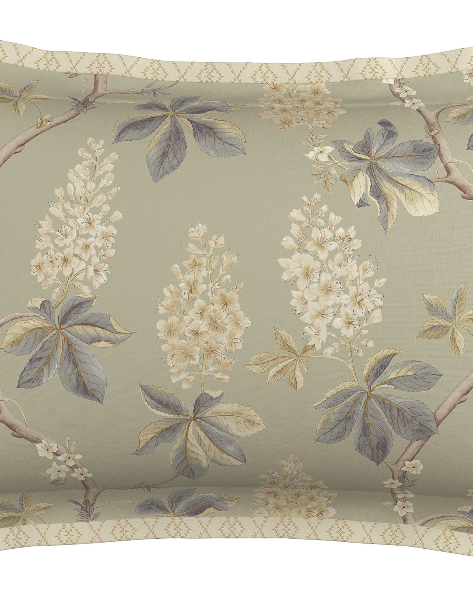 استمتع بجمال الصيف البريطاني مع طقم الفراش الرائع هذا، المزين بأزهار كستناء الحصان المرسومة يدويًا على خلفية رمادية زرقاء هادئة. مصنوع من قطن ساتان فاخر بكثافة 200 خيط، يتميز بتصميمه القابل للعكس بطبعة تعريشة رقيقة بلون كريمي. يأتي مع أغطية وسائد أكسفورد متناسقة وحواف مسطحة أنيقة، ومتوفر بمقاسات مزدوجة، وكينج، وسوبر كينج.
