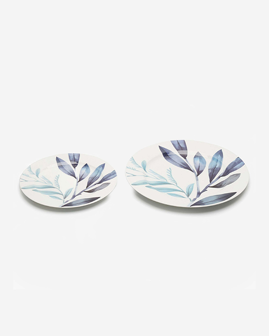 مجموعة رائعة من أطباق "الزهرة الزرقاء" بزخارف زهرية أنيقة بدرجات اللون الأزرق. أوراق الشجر، والفتحات، والألوان المائية، متوفرة بنسختين، لتضفي لمسة فنية وجمالية.