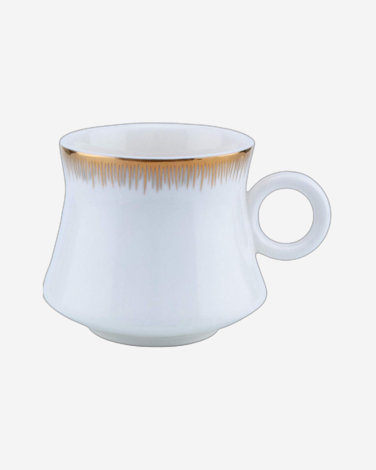 طقم فناجين شاي وصحن من الخزف الصيني العظمي الضحل، 12 قطعة - أبيض/ذهبي، 220 مل
