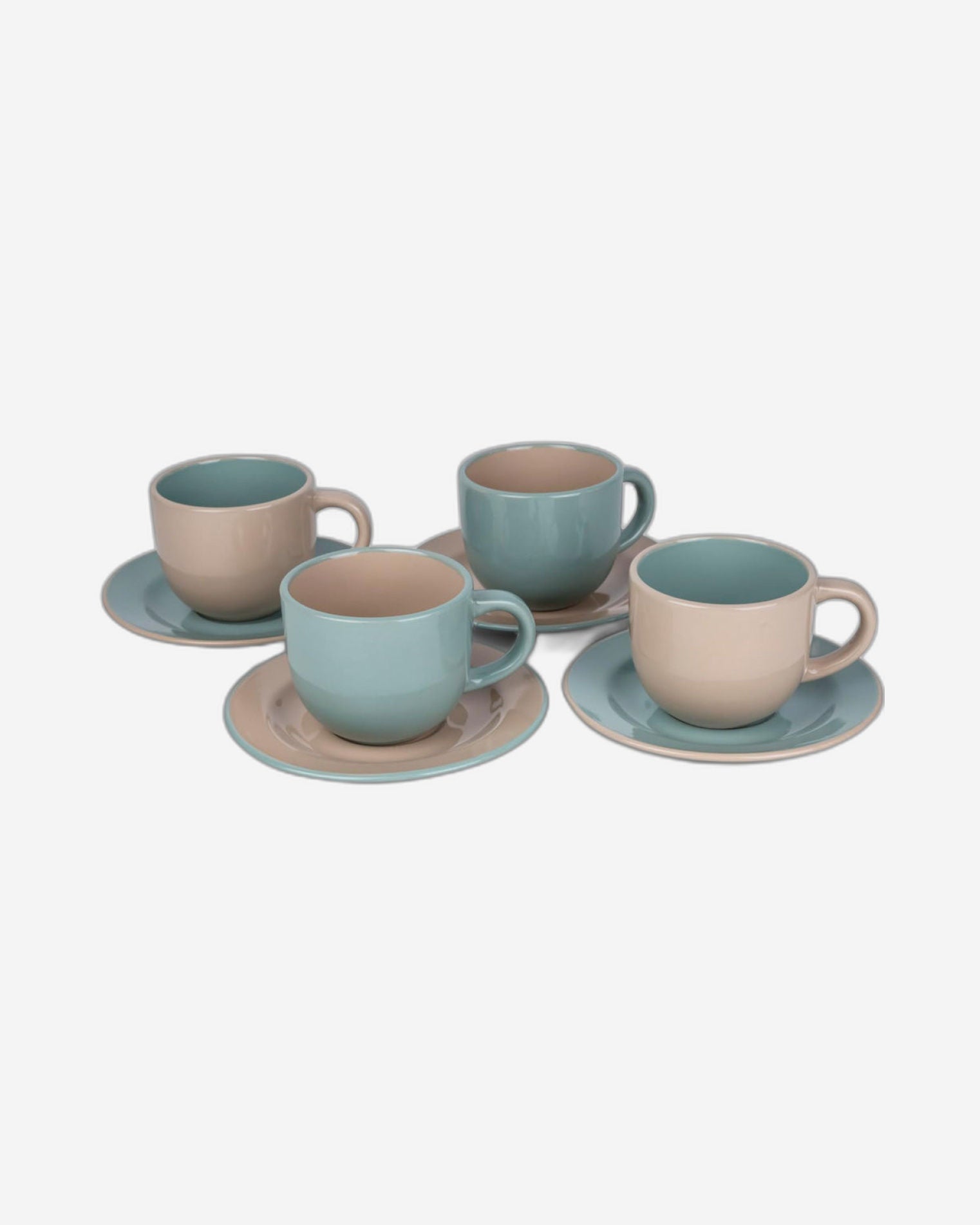 طقم فناجين شاي وصحن من شالو موير، 4 قطع، سعة 220 مل - قطعتان | أدوات مائدة للمطبخ، سيراميك، فخار حجري