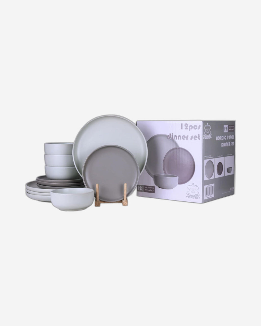 طقم عشاء من الفخار الحجري الشمالي الضحل، 12 قطعة، متعدد الألوان
