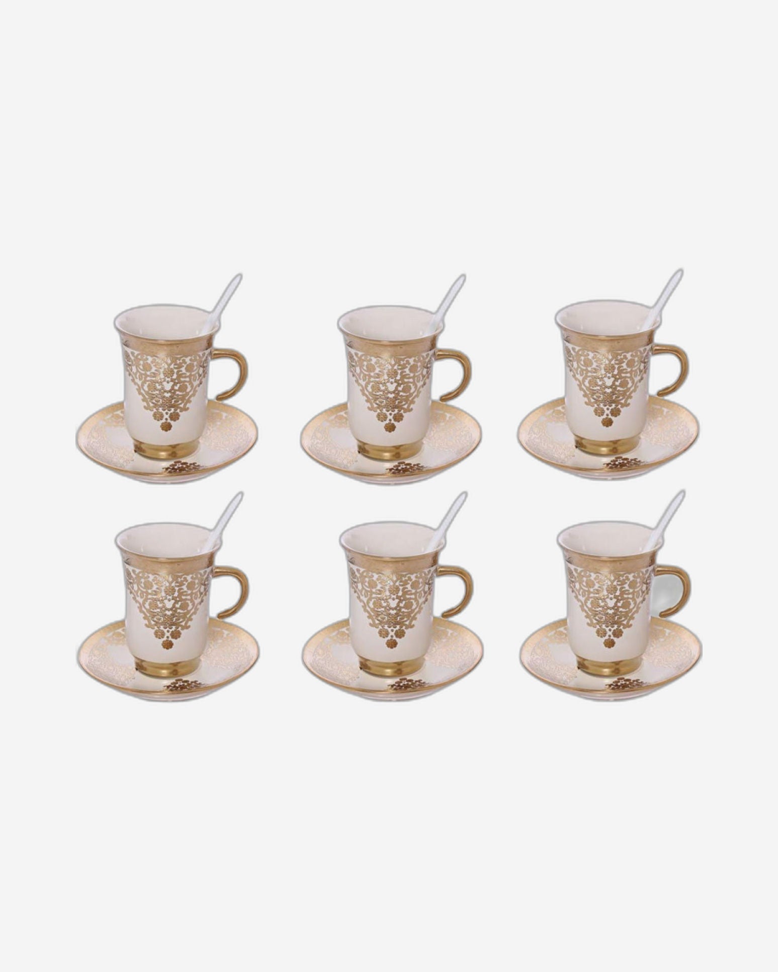 * مجموعة كاملة مكونة من 12 قطعة: تتضمن 6 أكواب و6 صحون متطابقة، مثالية للاستمتاع بالشاي أو القهوة أو المشروبات الساخنة الأخرى.