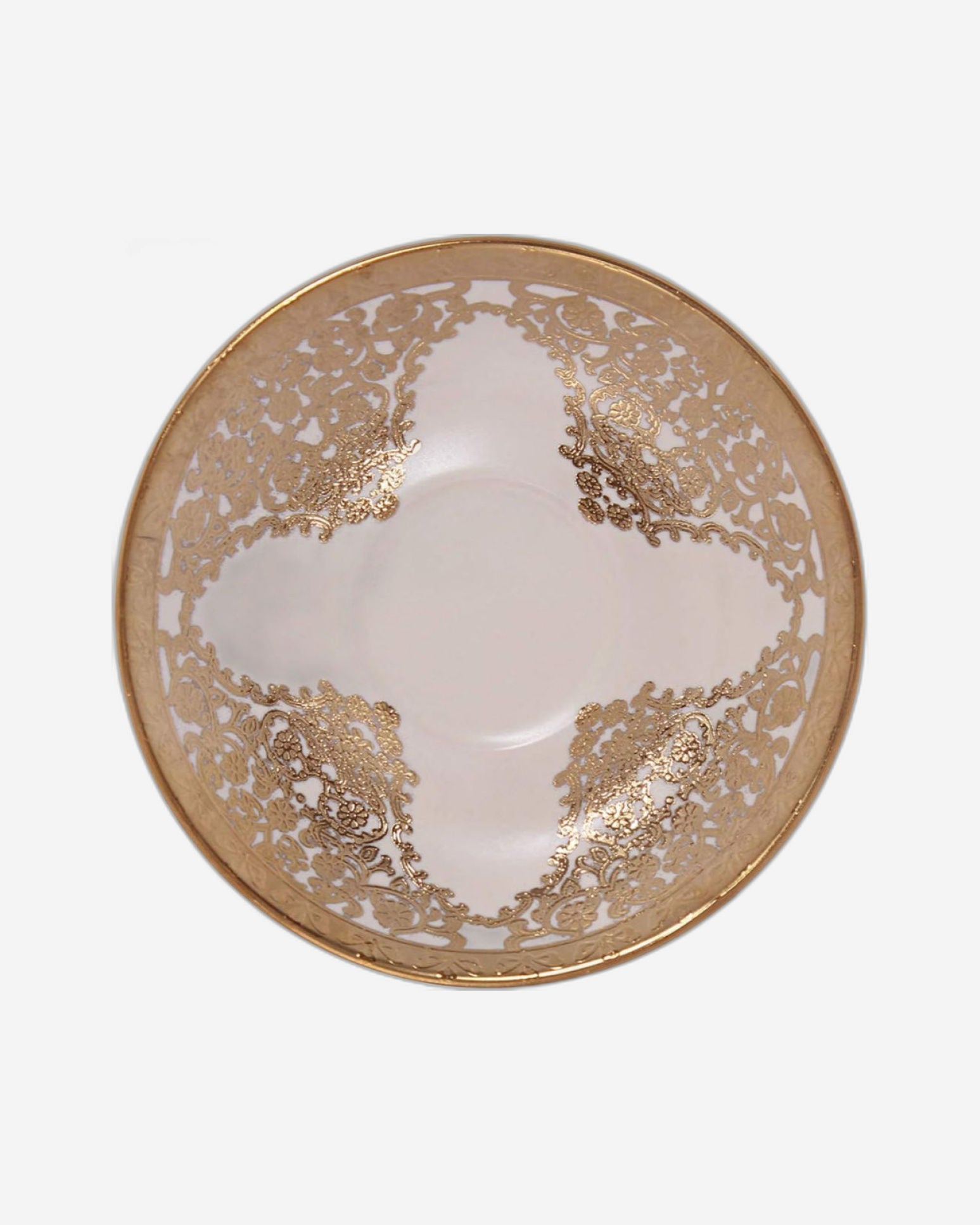 طقم فناجين وصحون من البورسلين الضحل، ١٢ قطعة، بيج/ذهبي - طقم شاي/قهوة أنيق لتناول الطعام اليومي