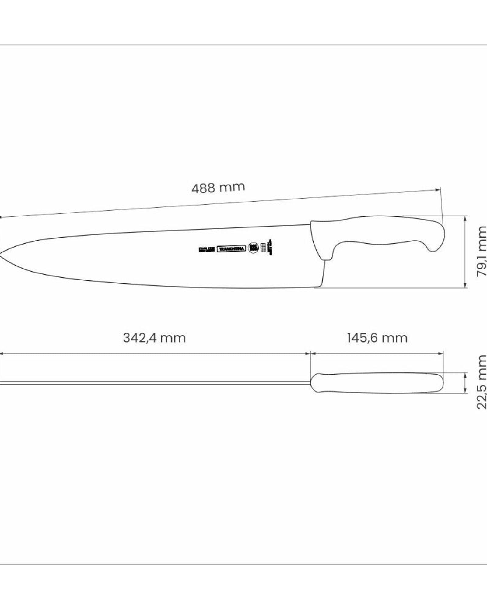 ترامونتينا منذ عام 1911، صنع في البرازيل. سكين لحوم احترافية من ترامونتينا مقاس 14 بوصة بشفرة من الفولاذ المقاوم للصدأ ومقبض من البولي بروبيلين الأصفر.