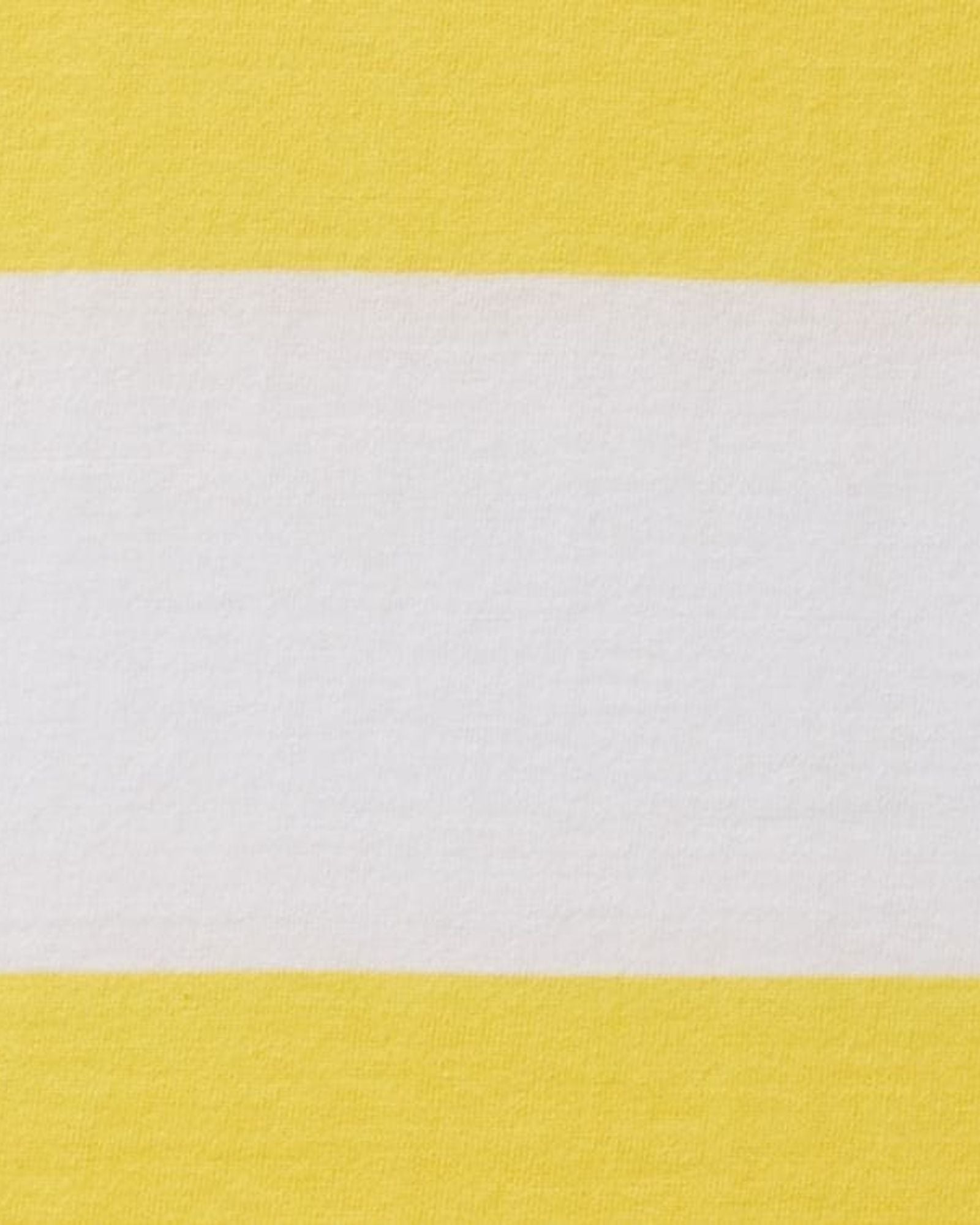 تيشيرت بأكمام قصيرة وياقة دائرية من القطن الخالص، بخطوط ماكسي ثنائية اللون وطبعة نصية على الجهة الأمامية. تصميم واسع وفضفاض، مثالي لمغامرات الصيف.