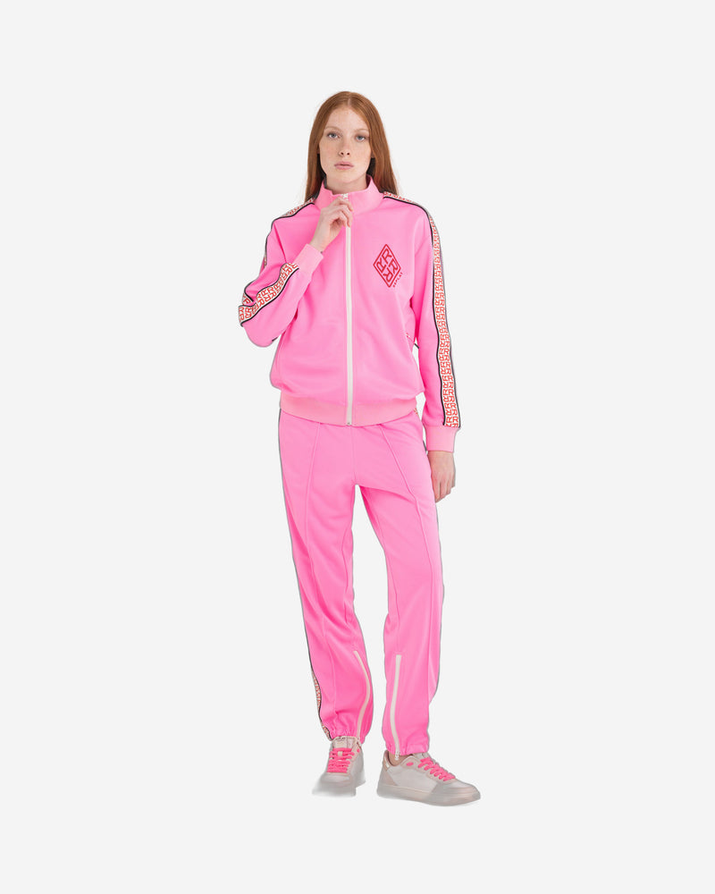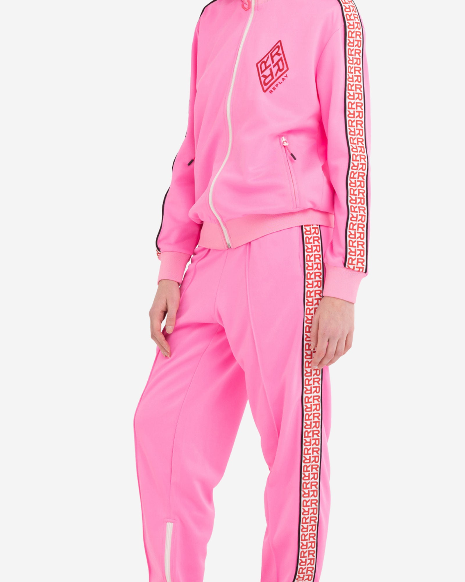 سويت شيرت بياقة مصنوعة من قماش تقني مرن. يتميز بسحاب كامل وقصة عادية، مع أشرطة متباينة الألوان مصممة خصيصًا على الأكمام. يُضفي على القطعة لمسةً مميزةً من خلال طباعة الحروف على الصدر.
