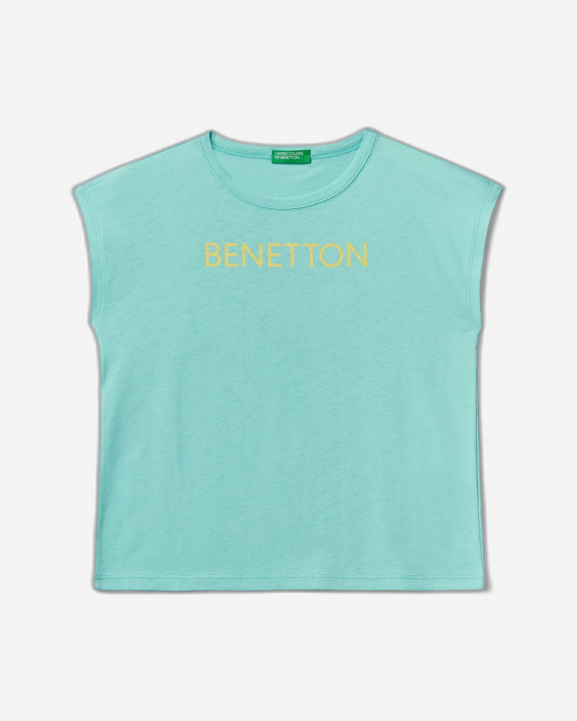 تيشيرت بياقة دائرية وأكمام قصيرة من القطن العضوي الخالص. قطعة أساسية ومريحة، مزينة بطبعة شعار لامعة.