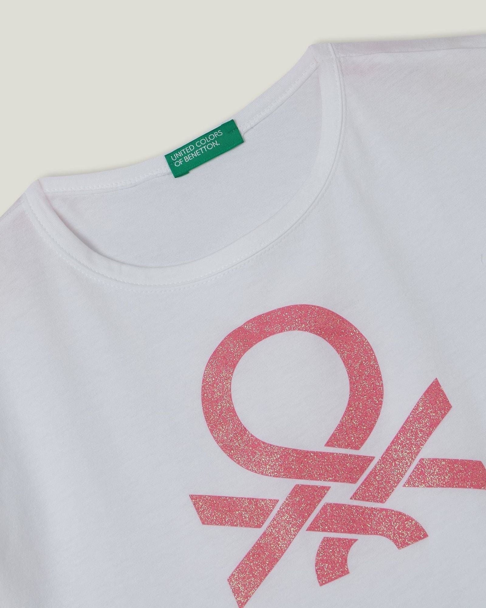 تيشيرت بياقة دائرية وأكمام قصيرة من القطن العضوي الخالص. قطعة أساسية ومريحة، مزينة بطبعة شعار لامعة.