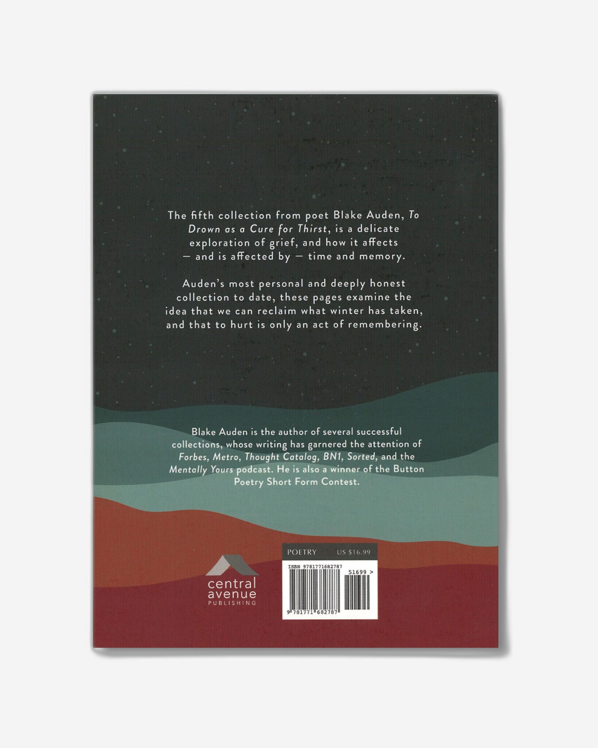 المجموعة الخامسة للشاعر بليك أودن، الغرق كعلاج للعطش، هي استكشاف دقيق للحزن وكيف يؤثر على الوقت والذاكرة ويتأثر بهما.