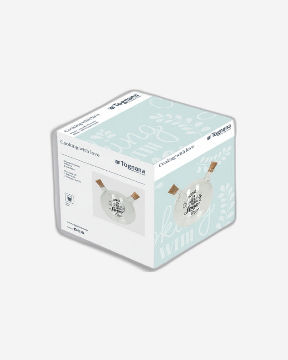 إبريق زيت/خل "الطبخ مع الحب" من توجنانا هو جزء من مجموعة كاملة من إكسسوارات الزجاج، بزخارف سوداء مميزة تُضفي طابعًا عصريًا وعصريًا على المجموعة بأكملها. يحتوي هذا الإبريق العملي والجميل على إبريقين: إبريق كبير سعة 410 سم مكعب بفتحة مزودة بسدادة من الفلين، وزجاجة أصغر سعة 60 سم مكعب مُجمّعة بداخله بفتحة مستقلة أخرى، مزودة بسدادة من الفلين. للحصول على طقم متناسق بدرجات اللون الأسود، يُمكن أيضًا تنسيق إبريق "الطبخ مع الحب" مع سلال ورقية مريحة.