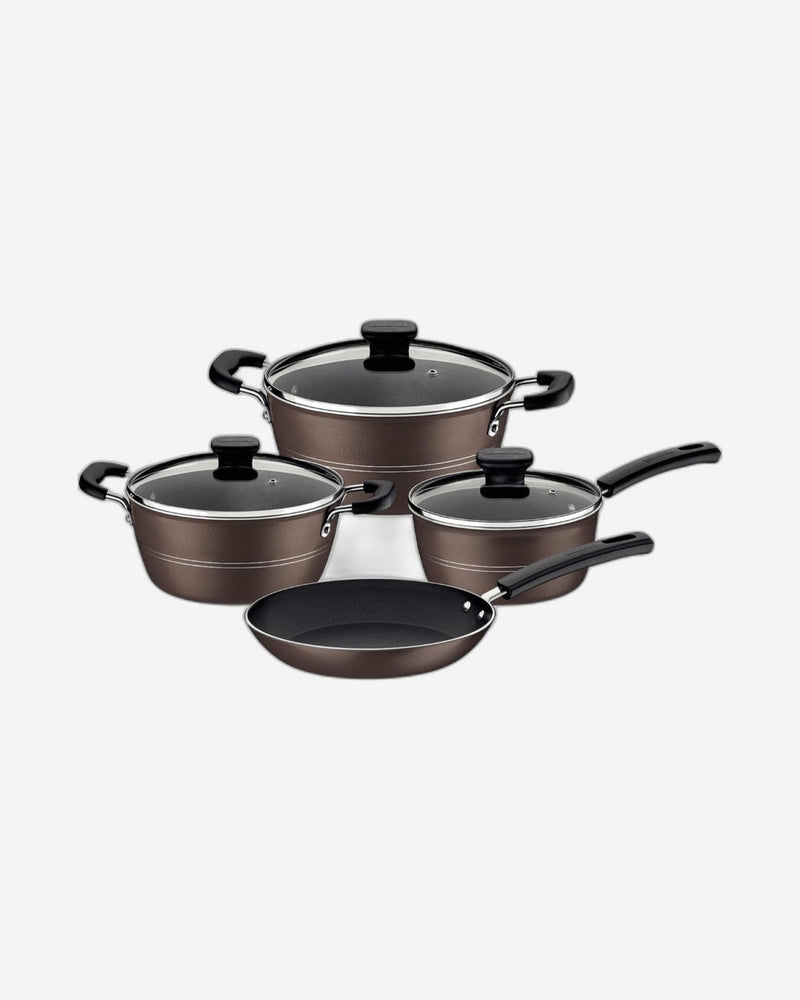 * قم بترقية مطبخك مع مجموعة أواني الطهي المصنوعة من الألومنيوم باللون البندق من Tramontina Sicília والمكونة من 7 قطع.