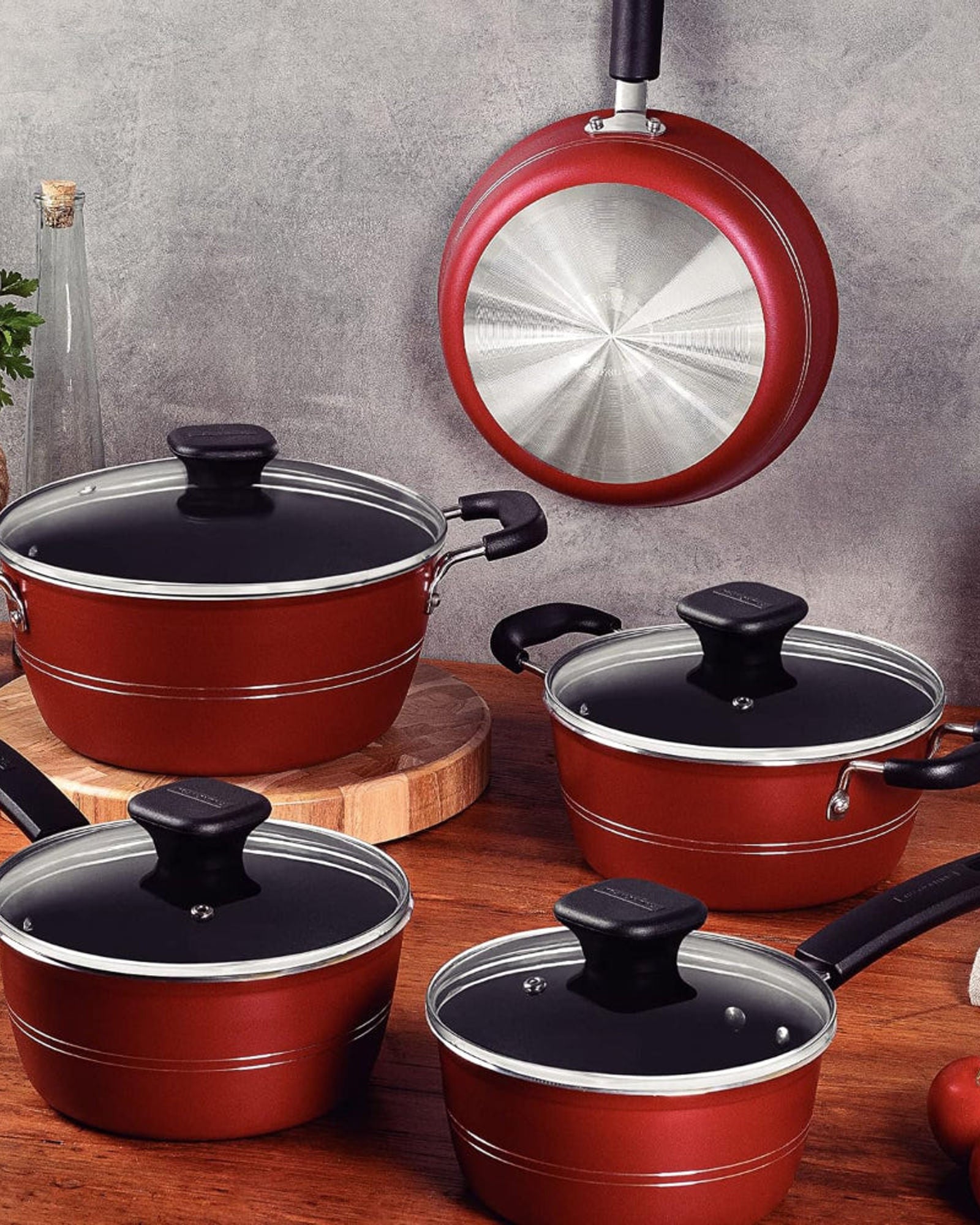 * ترامونتينا، صقلية، بندق، مجموعة أواني طهي من الألومنيوم، طلاء ستارفلون داخلي ممتاز، طلاء ستارفلون خارجي ممتاز، غير لاصق، خالٍ من حمض بيرفلورو الأوكتانويك، ممتاز، 9 قطع، طهي موحد، منع البقع، متين، أغطية من الزجاج المقوى، فتحة تهوية للبخار، حافة من الفولاذ المقاوم للصدأ، مقابض مقاومة للحرارة، التعامل الآمن، آمنة للغسل في غسالة الأطباق، سهلة التنظيف، أدوات المطبخ، أدوات الطبخ، مجموعة أدوات الطبخ، أدوات المطبخ، ملحقات المطبخ، مجموعة طهي، أواني طهي غير لاصقة، عالية الجودة، فعالة، تجربة طهي، طواجن، مقالي صلصة، أساسيات المطبخ.