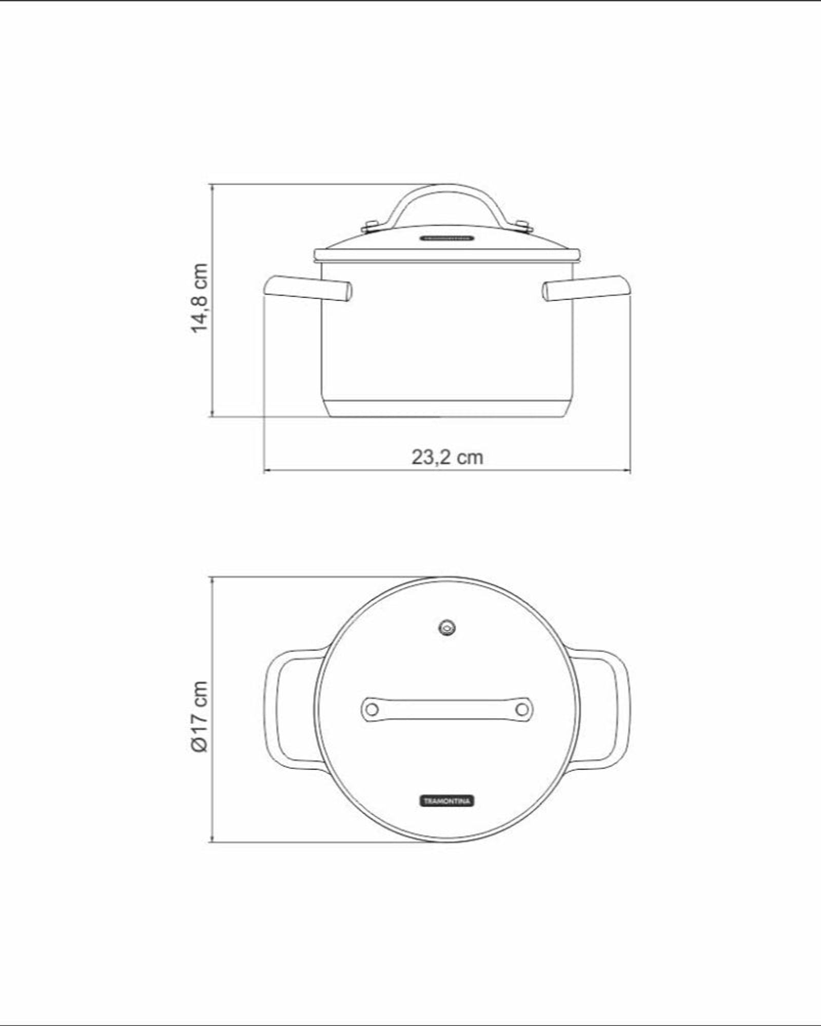ترامونتينا برازيل أونا 16 سم 1.8 لتر قدر عميق من الفولاذ المقاوم للصدأ مع قاعدة ثلاثية الطبقات
