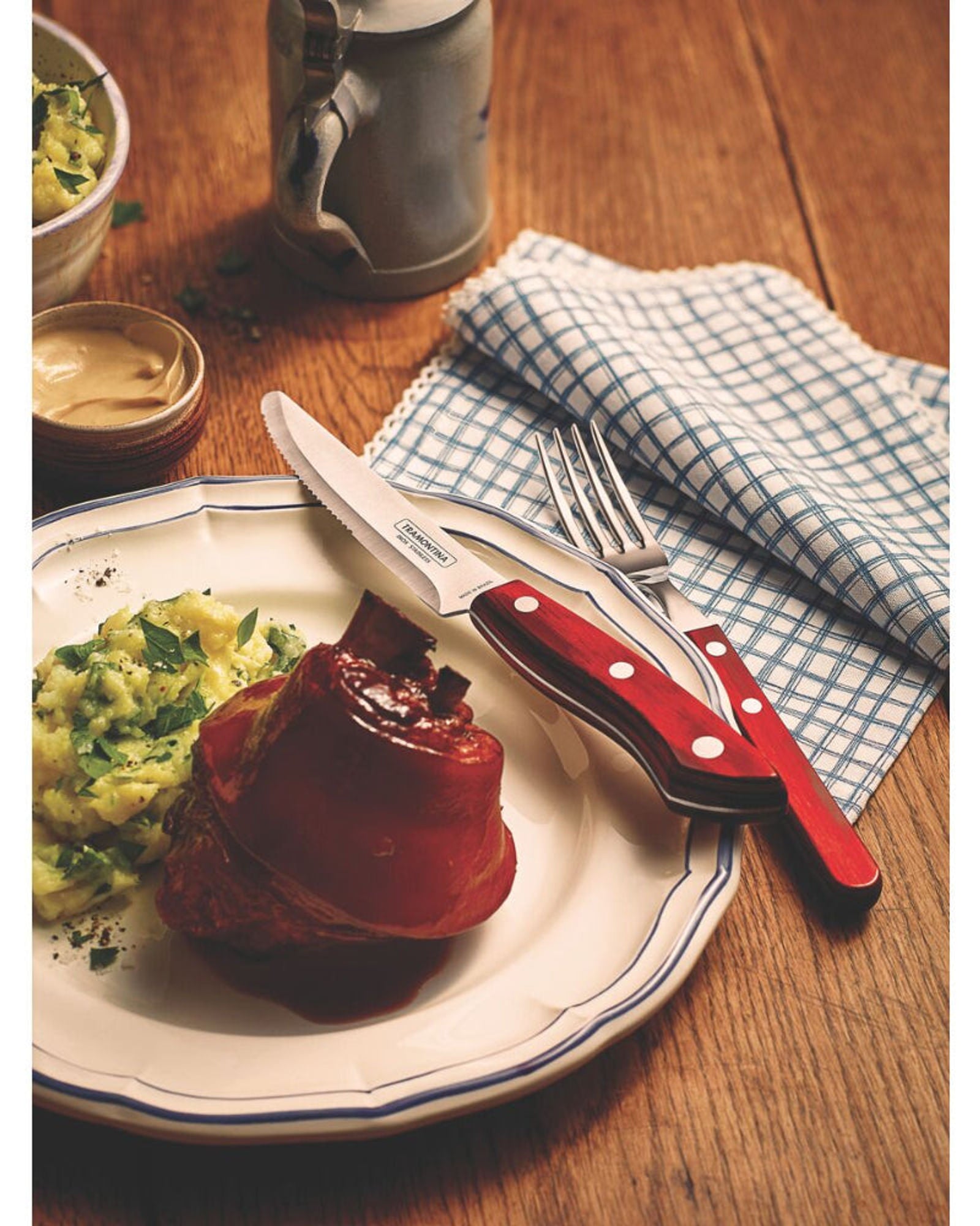 إذا كنت من عشاق الشواء، فأنت تعلم أن امتلاك شوكة طعام عالية الجودة أمرٌ لا غنى عنه للاستمتاع بكل لقمة من اللحم. شوكة ترامونتينا تشوراسكو، ذات الأسنان المصنوعة من الفولاذ المقاوم للصدأ والمقبض الأحمر المعالج من خشب البولي وود، سترفع مستوى تجربة تناول الطعام لديك. بفضل أسنانها المصنوعة من الفولاذ المقاوم للصدأ المعالج حراريًا، تتميز هذه الشوكة بقوة ومتانة عاليتين. أما مقبضها المصنوع من خشب البولي وود المعالج، فهو مقاوم للصدمات ودرجات الحرارة العالية، مما يضمن استخدامًا أكثر أمانًا وراحة أثناء تناول قطعة اللحم المفضلة لديك. إضافةً إلى كل هذه الميزات، فهي مثبتة بمسامير ألومنيوم، مما يزيد من قوتها ومتانتها. شوكة عملية ومتعددة الاستخدامات، وآمنة للغسل في غسالة الأطباق، مما يجعل روتينك اليومي في المطبخ أسهل بكثير!