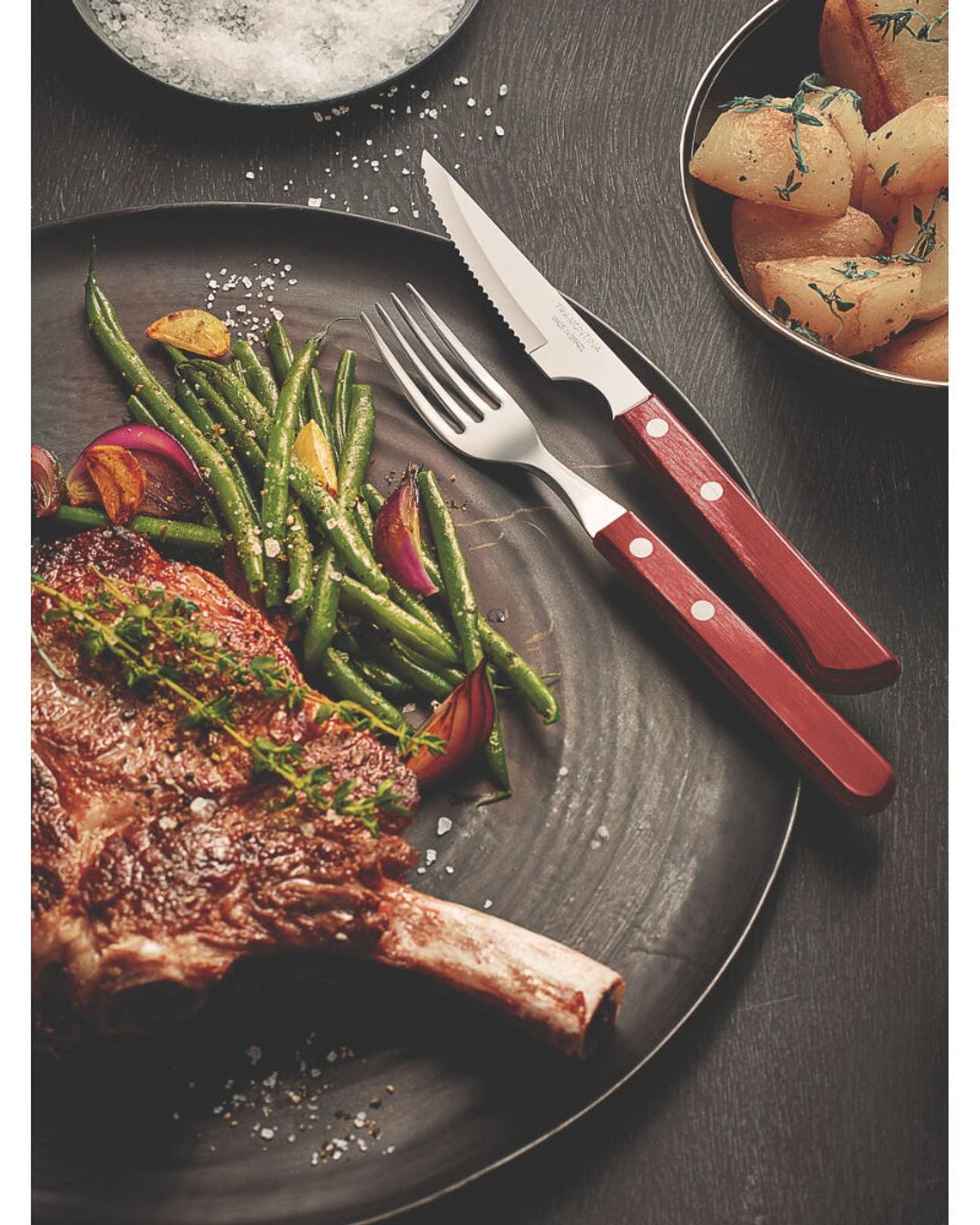 شوكة مائدة ترامونتينا تشوراسكو ذات أسنان من الفولاذ المقاوم للصدأ ومقبض من خشب البولي وود الأحمر المعالج