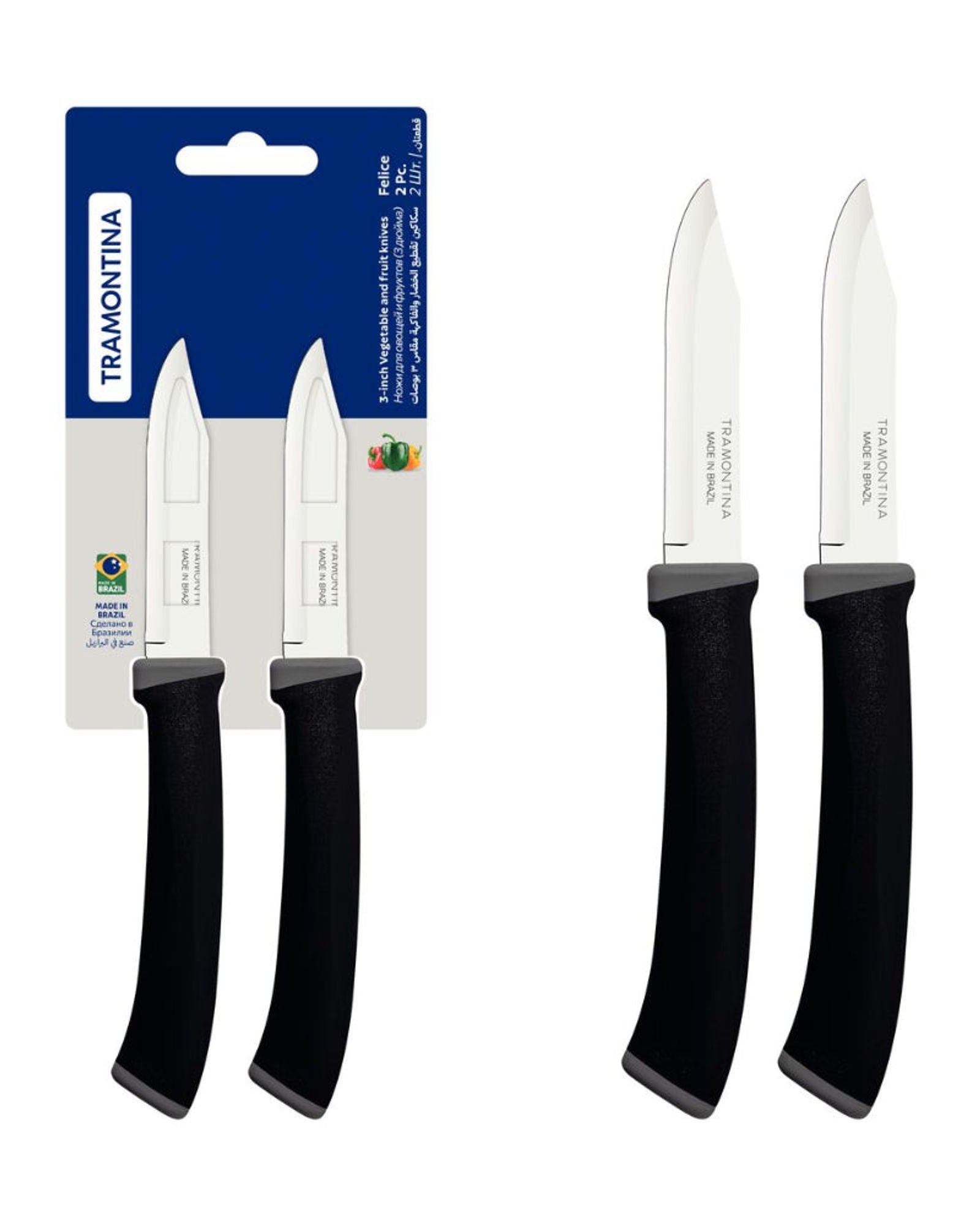 طقم سكاكين ترامونتينا فيليس المكون من قطعتين للخضراوات والفواكه بشفرات من الفولاذ المقاوم للصدأ ومقابض من البولي بروبيلين الأسود