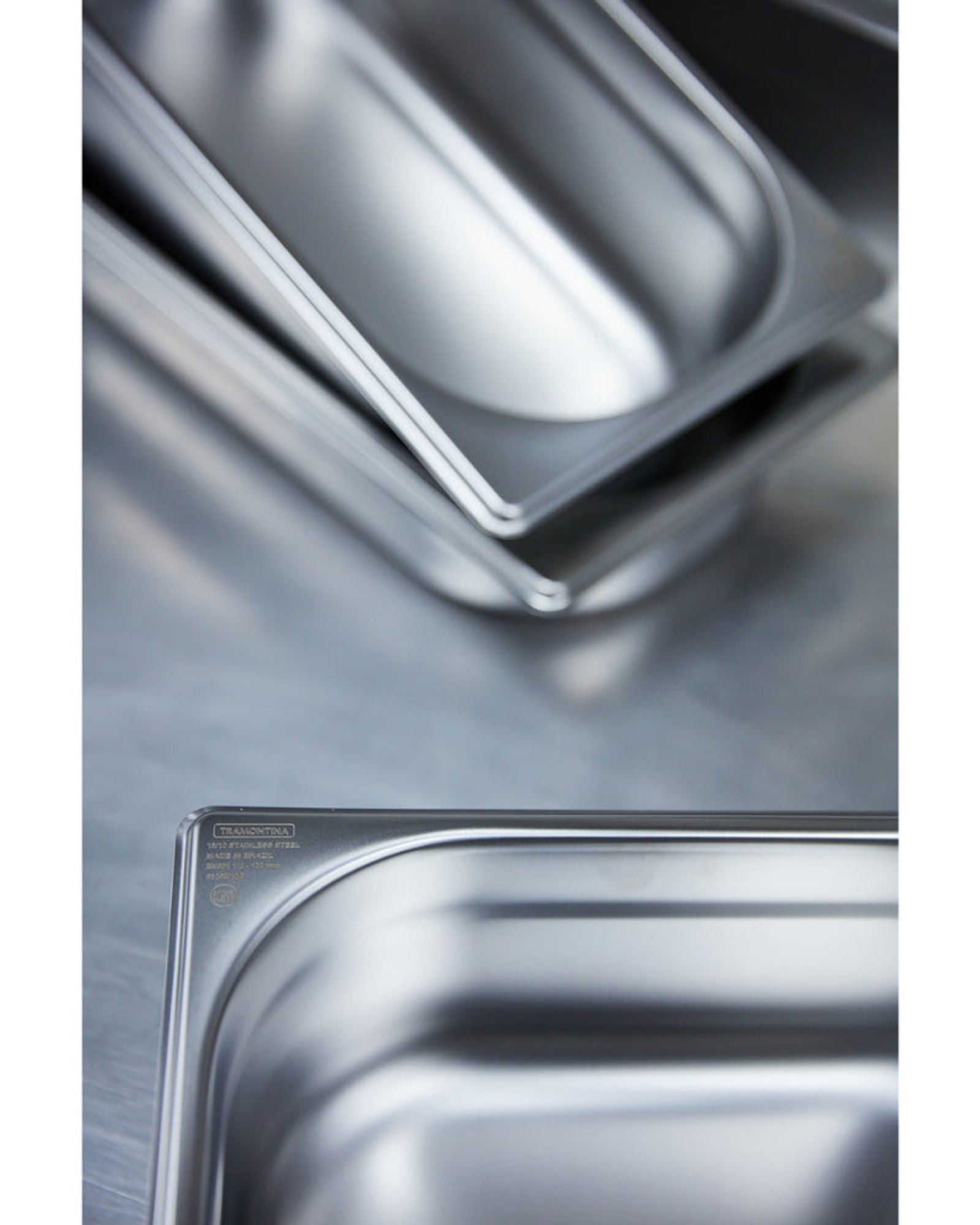 صينية طعام ترامونتينا GN 1/4 من الفولاذ المقاوم للصدأ بدون مقابض، عمق 65 مم - فولاذ 304