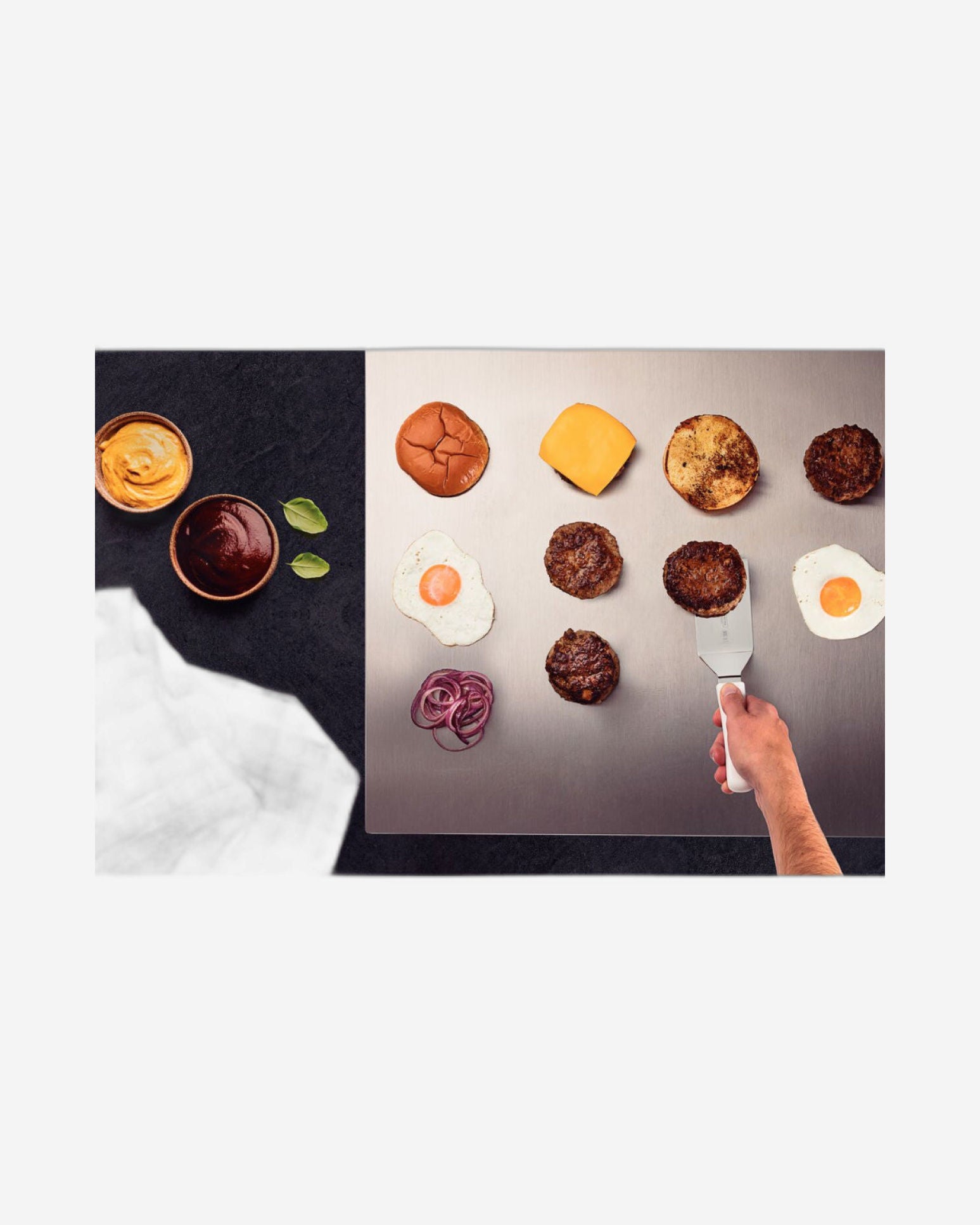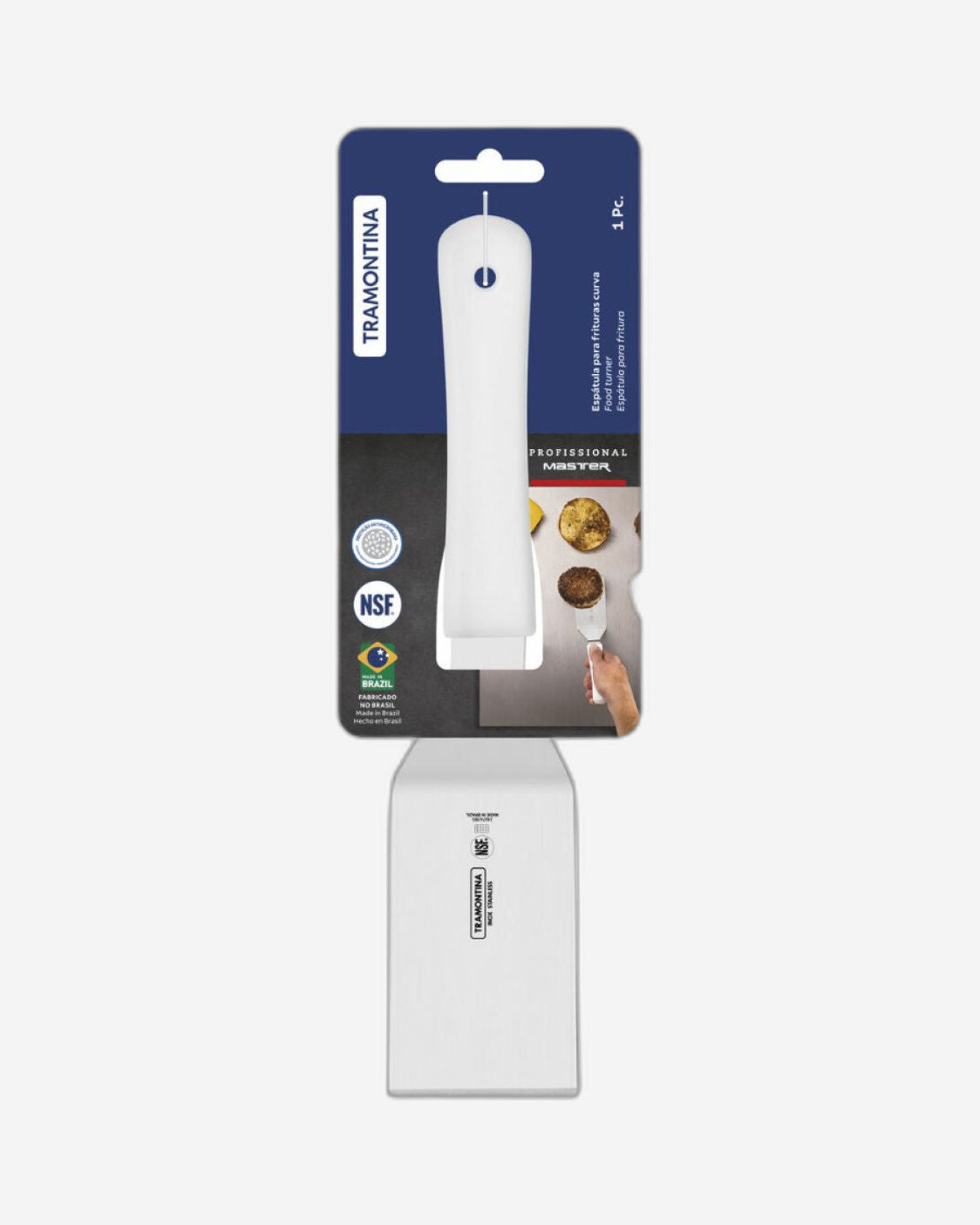 ملعقة قلي احترافية من ترامونتينا بشفرة من الفولاذ المقاوم للصدأ ومقبض من البولي بروبيلين الأبيض، 5 × 2.5 بوصة