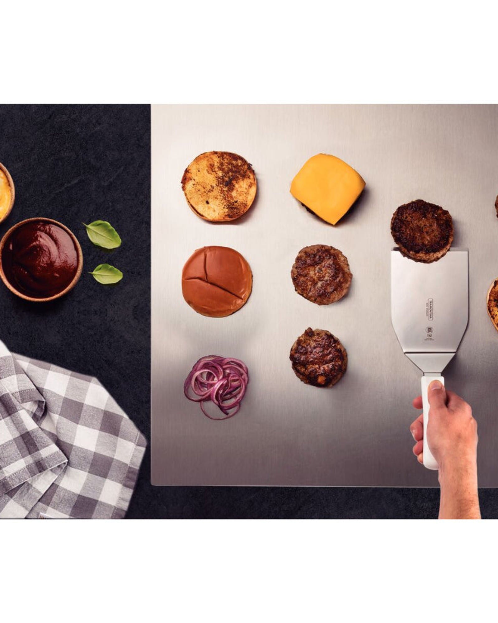 إتقان الطبخ على طبق ساخن: أتقن فن الطبخ على طبق ساخن باستخدام شفرة الملعقة المصنوعة من الفولاذ المقاوم للصدأ، والمصممة للتعامل مع البرجر دون كسره.