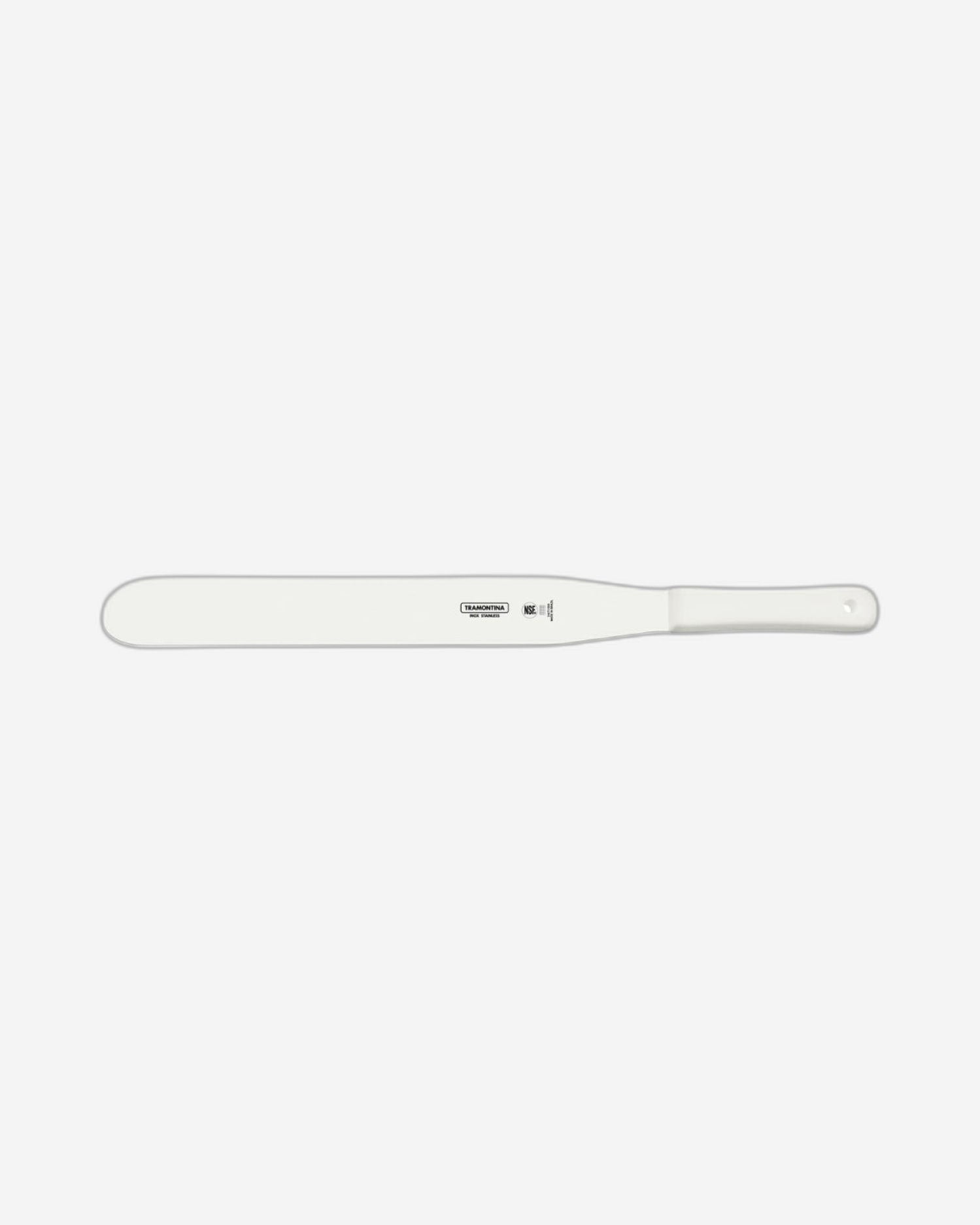 ملعقة ترامونتينا الاحترافية ذات الحافة المنحنية بشفرة من الفولاذ المقاوم للصدأ ومقبض من البولي بروبيلين الأبيض 14 بوصة