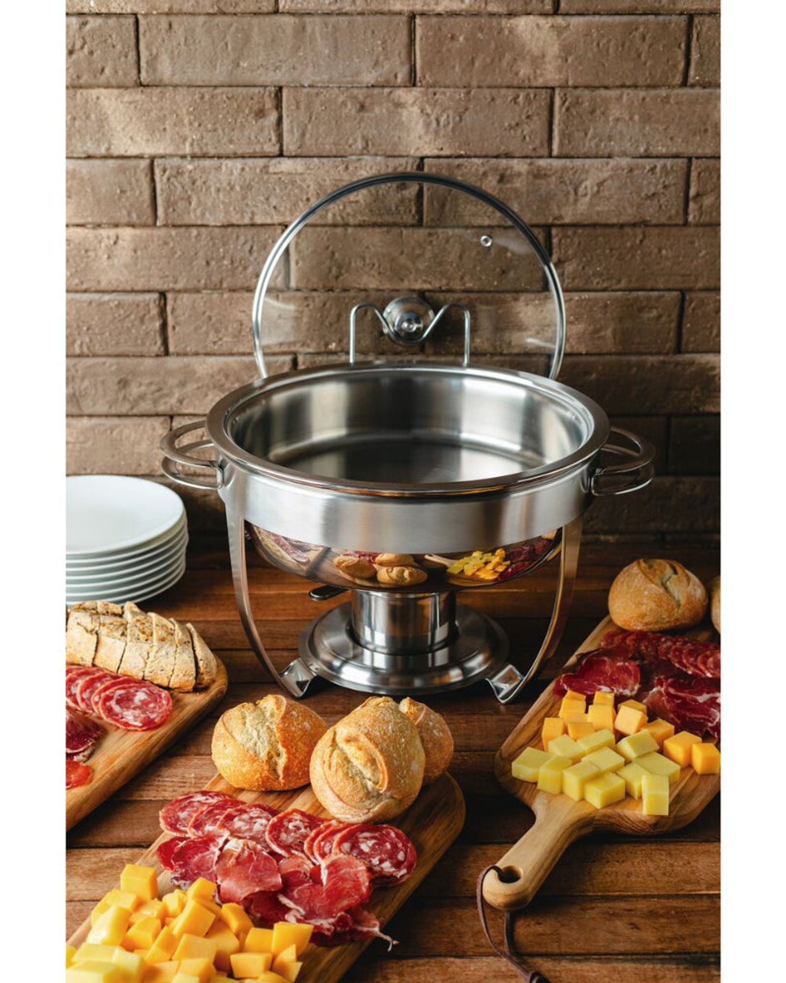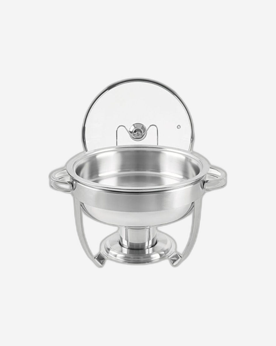 طبق تسخين دائري من الفولاذ المقاوم للصدأ من ترامونتينا مع حامل غطاء وموقد، سعة 4.3 لتر