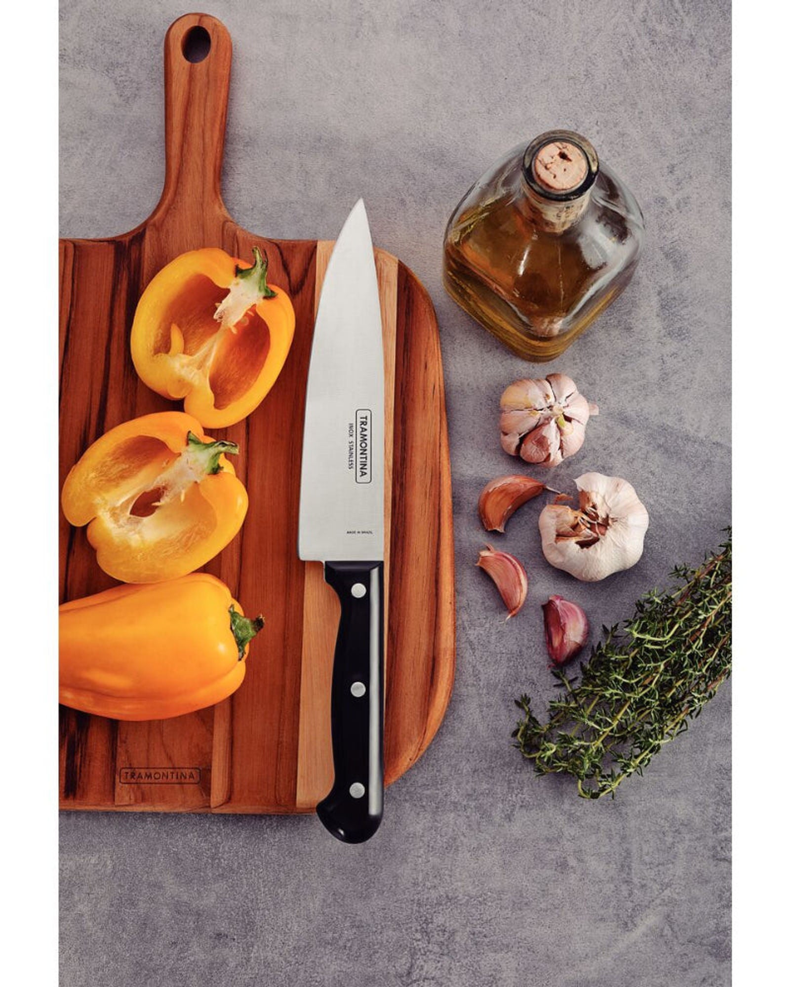 ادعُ الأصدقاء والعائلة للاستمتاع بعشاء شهي. مع سكين الطهاة ترامونتينا ألتراكورت، بشفرة من الفولاذ المقاوم للصدأ ومقبض أسود من البولي بروبيلين بطول 7 بوصات، سترتقي بوصفاتك إلى مستوى جديد. مثالية لجميع احتياجات المطبخ، بشفرة من الفولاذ المقاوم للصدأ بطول 7 بوصات. ولزيادة متانة الشفرة، خضعت لمعالجة حرارية، مما يجعلها أكثر مقاومة. يتميز المقبض الأسود الأنيق المصنوع من البولي بروبيلين براحة الاستخدام وحماية مضادة للميكروبات تمنع نمو الفطريات والبكتيريا. سهلة التنظيف وآمنة للغسل في غسالة الأطباق.