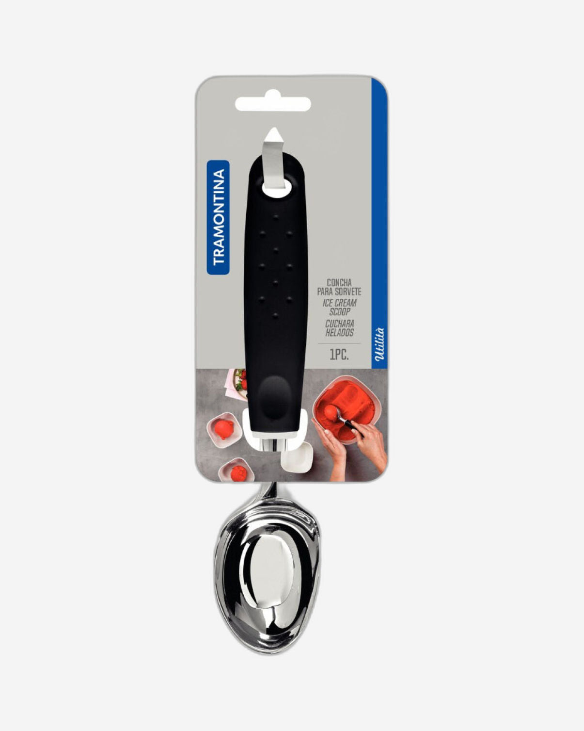 مغرفة آيس كريم ترامونتينا يوتيليتا المصنوعة من الزاماك المطلي بالكروم مع مقبض من البولي بروبيلين الأسود