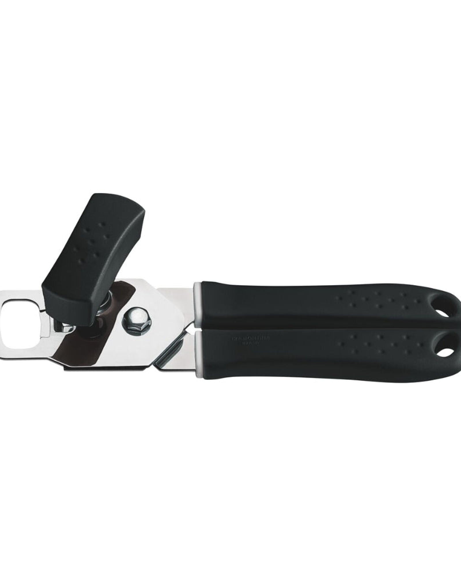 فتاحة علب ترامونتينا يوتيليتا المصنوعة من الفولاذ المقاوم للصدأ بمقبض أسود من البولي بروبيلين