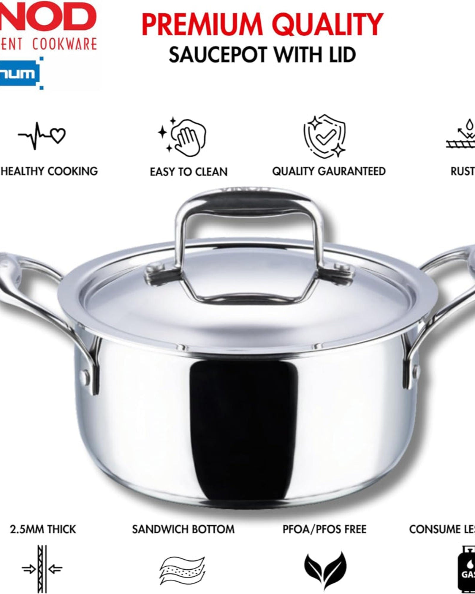 قدر طهي فينود بلاتينيوم تريبلي من الفولاذ المقاوم للصدأ مع غطاء - 20 سم، 3 لتر، سمك 2.5 مم، فضي (مناسب للطهي بالحث)