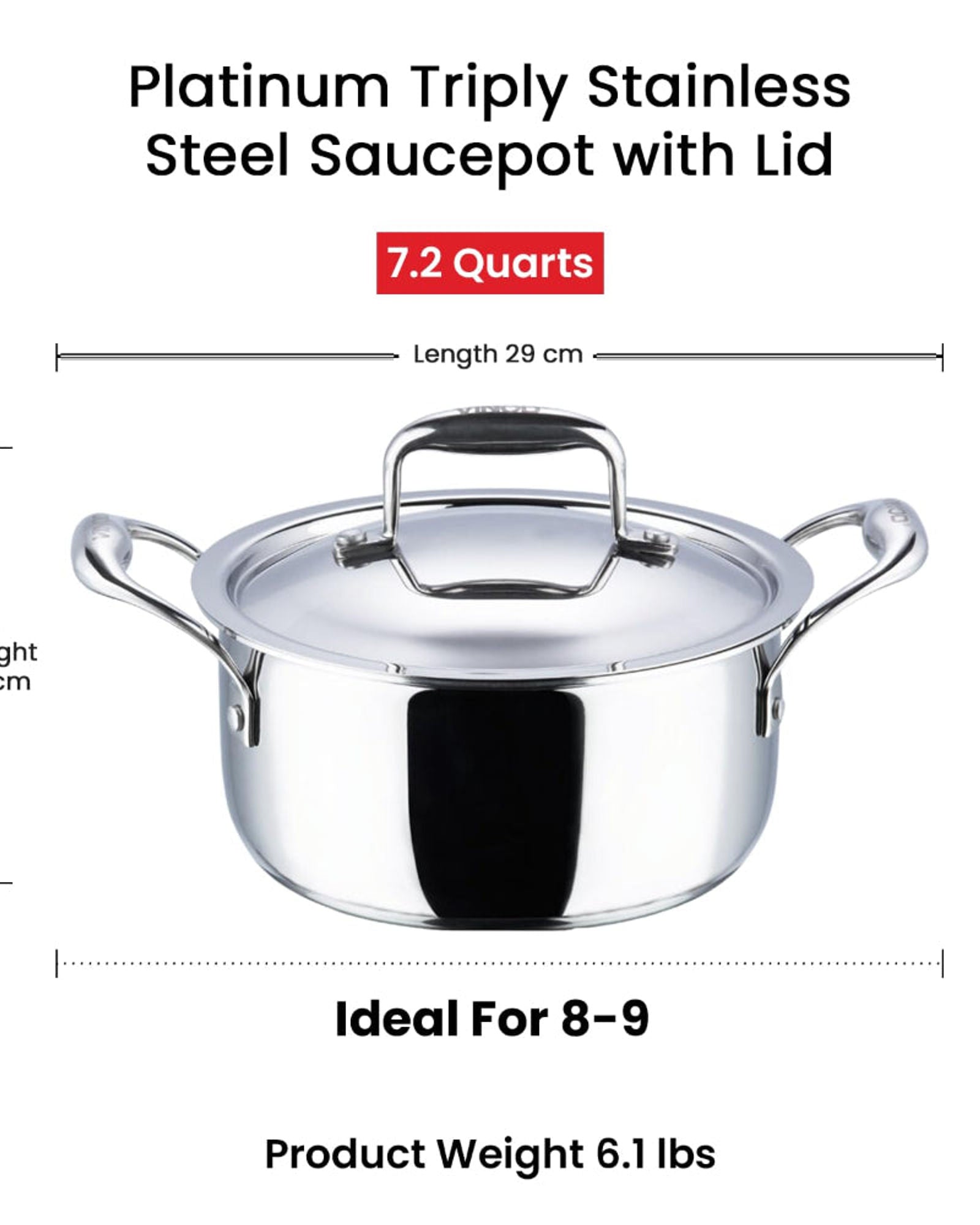 قدر طهي فينود بلاتينيوم تريبلي من الفولاذ المقاوم للصدأ مع غطاء - 26 سم، 6.8 لتر، فضي (مناسب للطهي بالحث، غير لاصق)