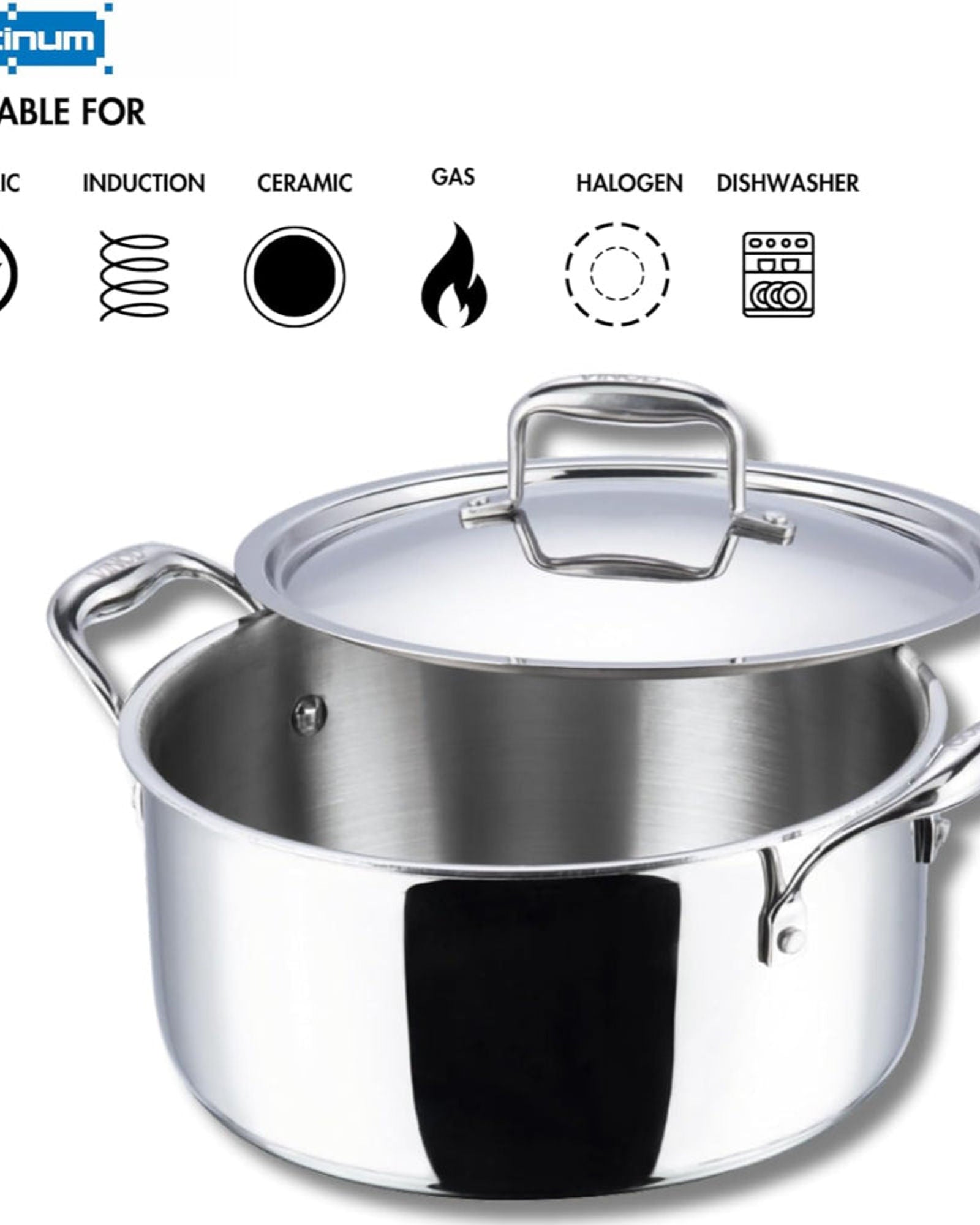 اطبخ بثقة مع قدر صلصة فينود بلاتينيوم تريبلي المصنوع من الفولاذ المقاوم للصدأ، المصمم لأداء ومتانة فائقين. بسعة 6.8 لتر وقطر 26 سم، يُعد هذا القدر عالي الجودة مثاليًا لطهي الحساء واليخنات والكاري والمعكرونة وغيرها الكثير.