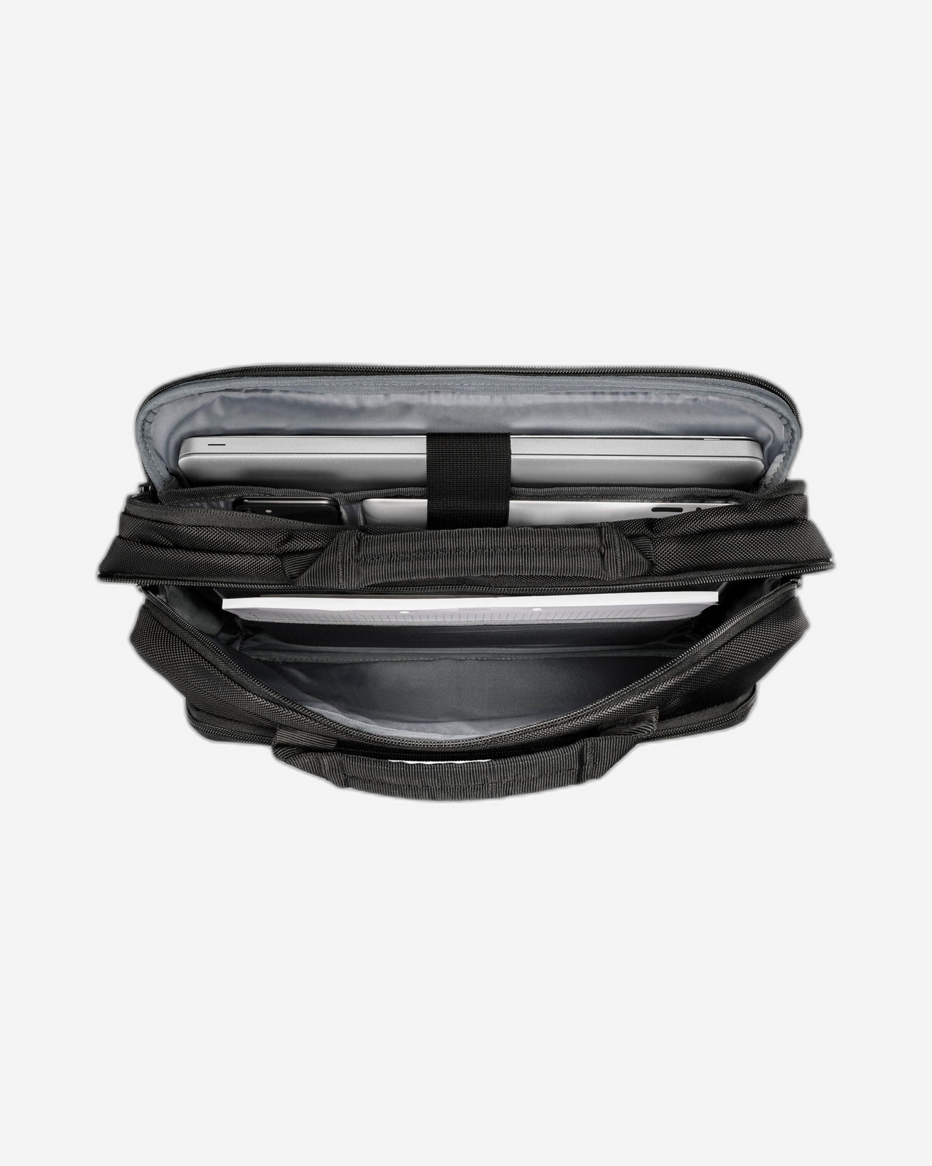 حسّن مظهرك المهني مع حقيبة Xe Brief 16، واستمتع بالمزيج المثالي بين الأناقة والعملية. صُنعت هذه الحقيبة من قماش خارجي رئيسي من زجاجات بلاستيكية مُعاد تدويرها، وتتميز بجيب مبطن يتسع بشكل مريح لجهاز كمبيوتر محمول حتى 16 بوصة، بالإضافة إلى جيب مخصص لجهاز لوحي مقاس 11 بوصة. ستجد في الداخل فاصل ملفات عمليًا ومنظمًا للأغراض الأساسية لتخزين الأغراض الصغيرة. يتيح لك حزام العربة المرن تثبيت الحقيبة بأمان على أمتعتك، بينما يوفر حزام الكتف القابل للفصل والمقابض المزدوجة خيارات حمل مريحة.
