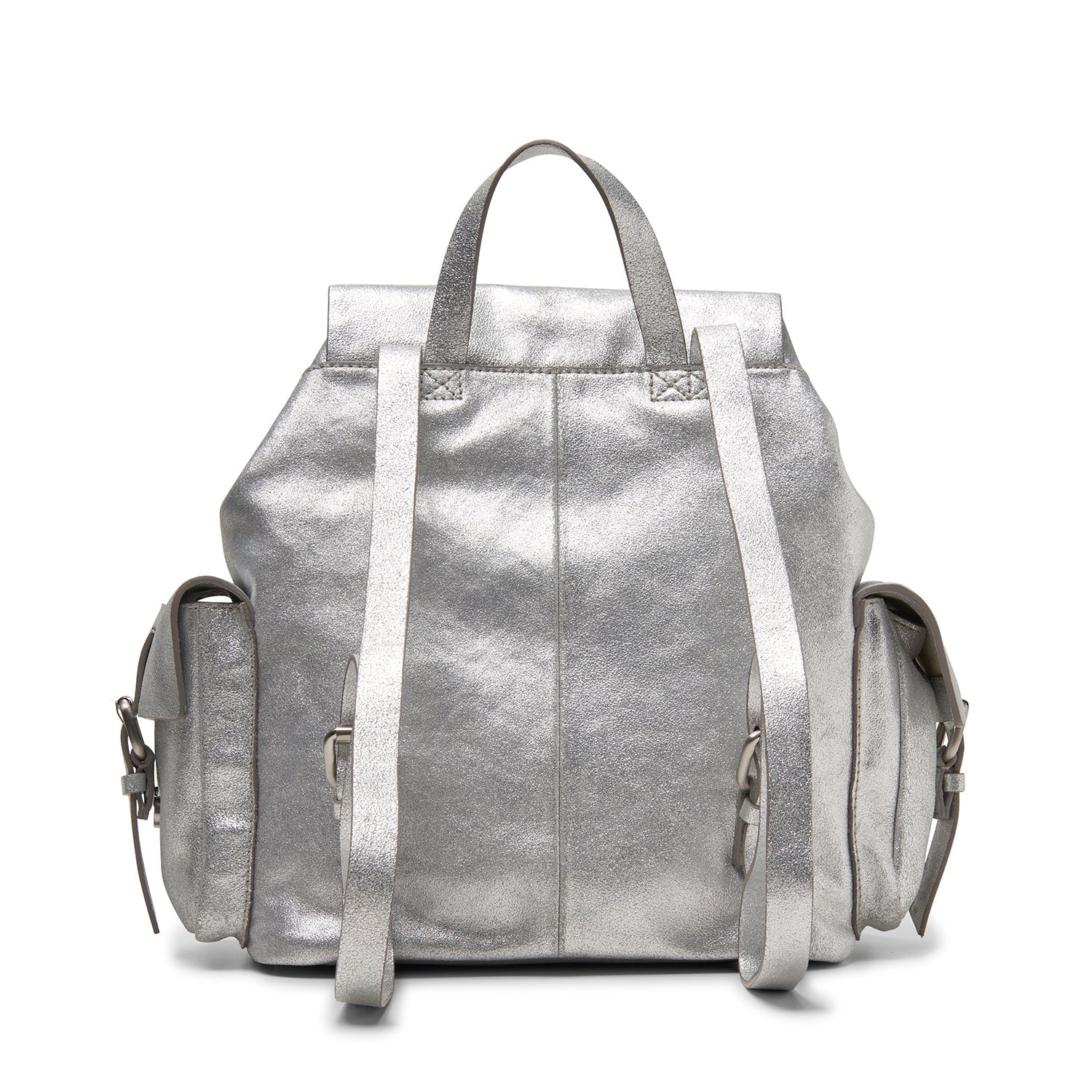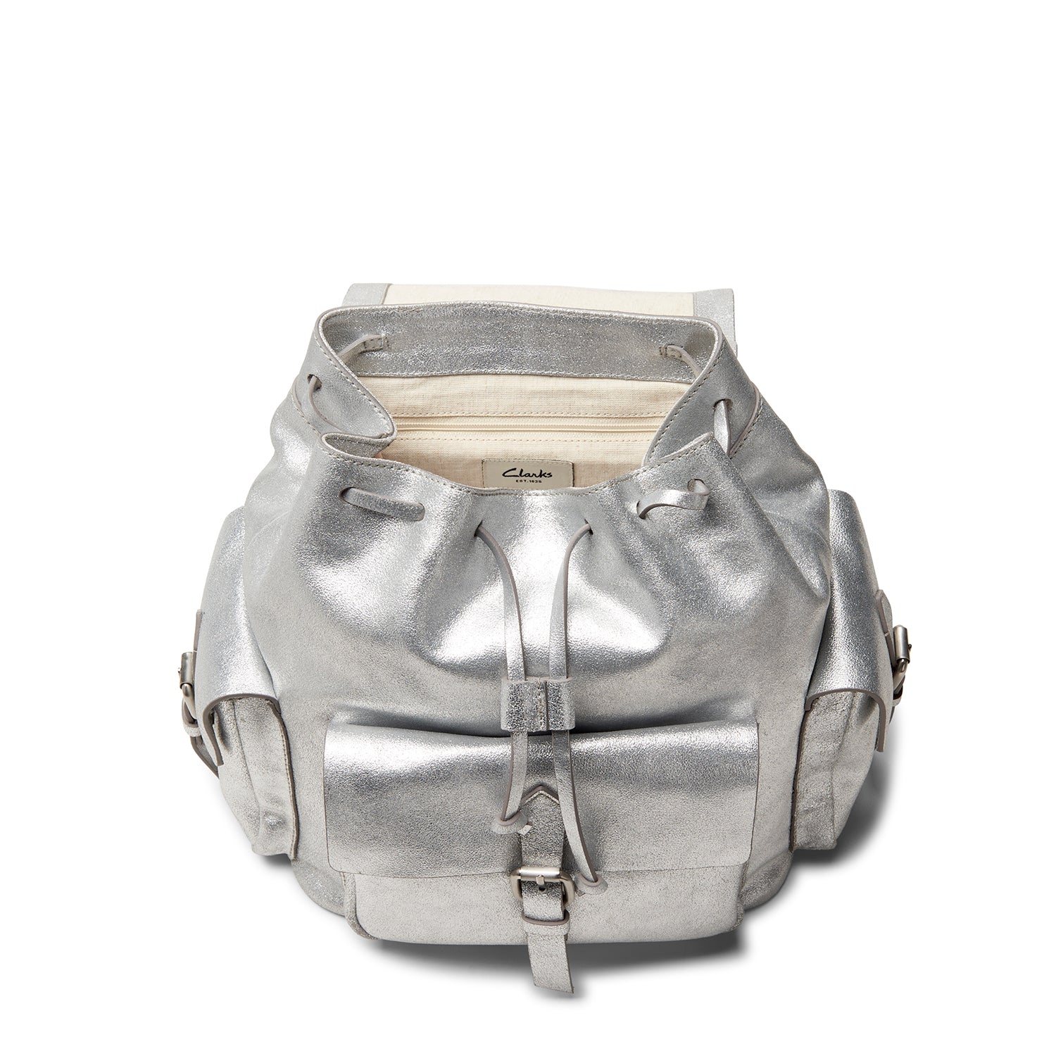 - مصنوعة من جلد معدني فضي ناعم وفاخر
