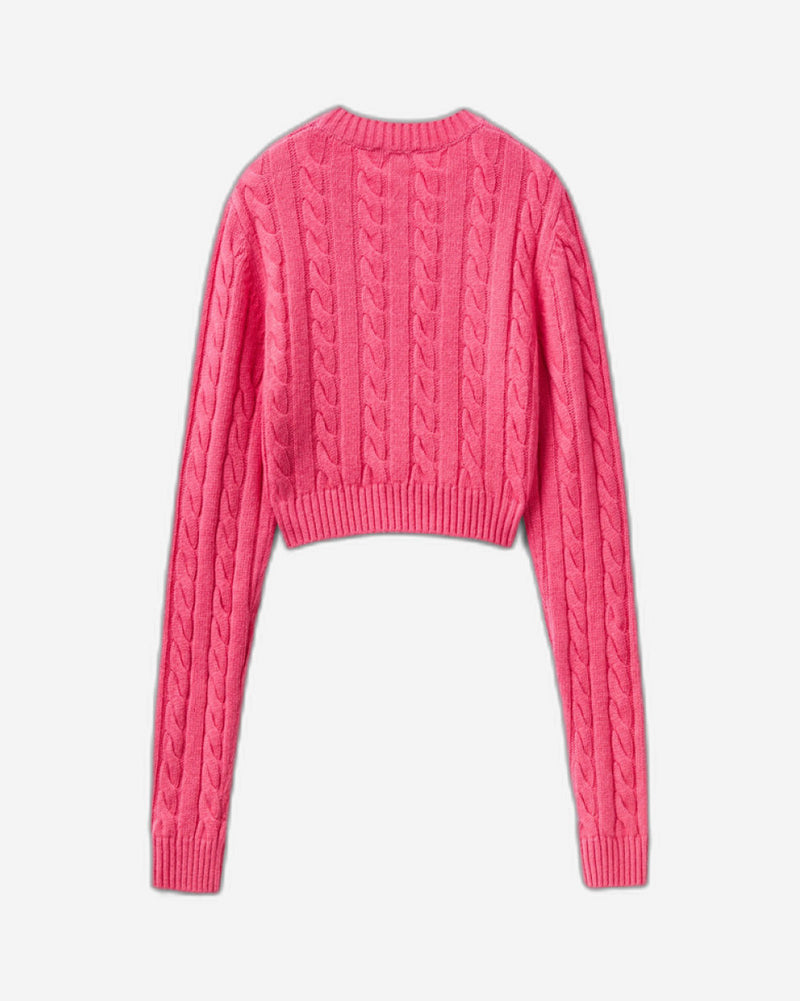 سترة بأكمام طويلة ورقبة دائرية، قصة مقصوصة، معالجة الضفائر بالكامل، حواف مضلعة.